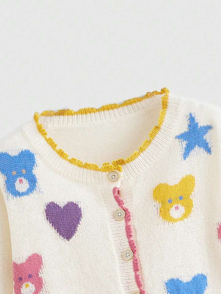 Kawaii Women's Knitted Cardigan With Button Closure And Bear Pattern