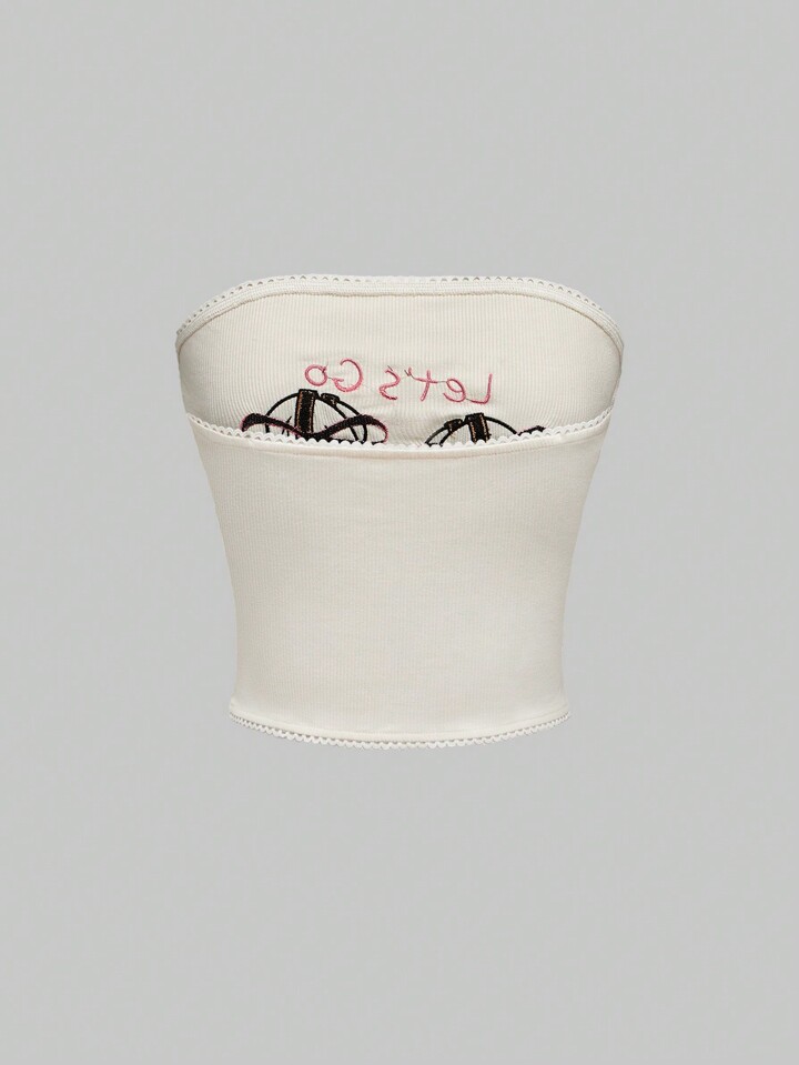 Kawaii Women's Letter Print Strapless Casual Blouse