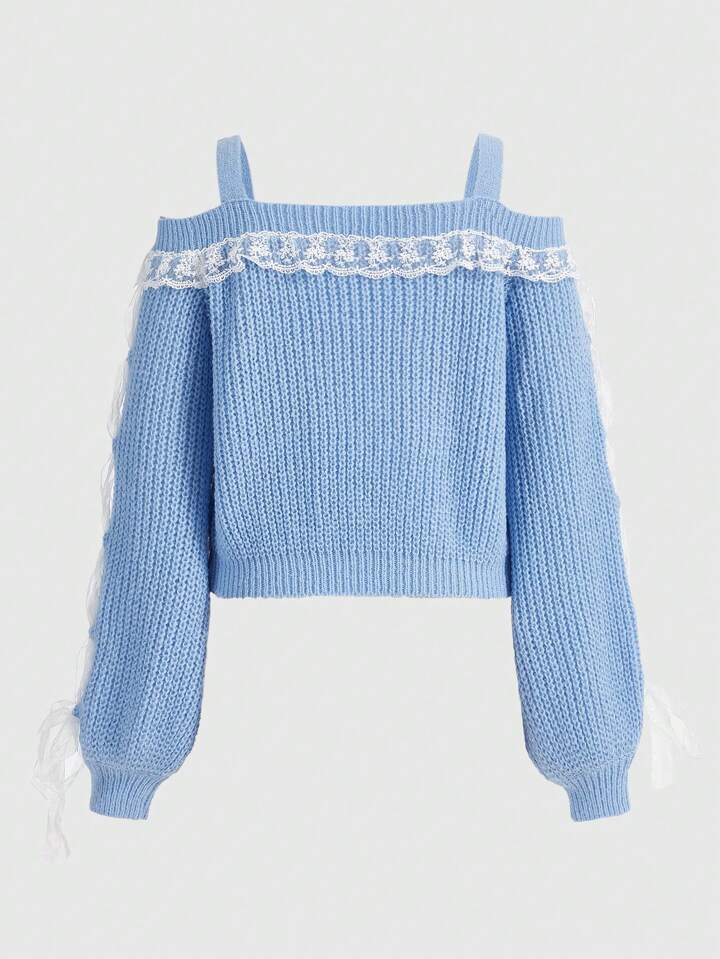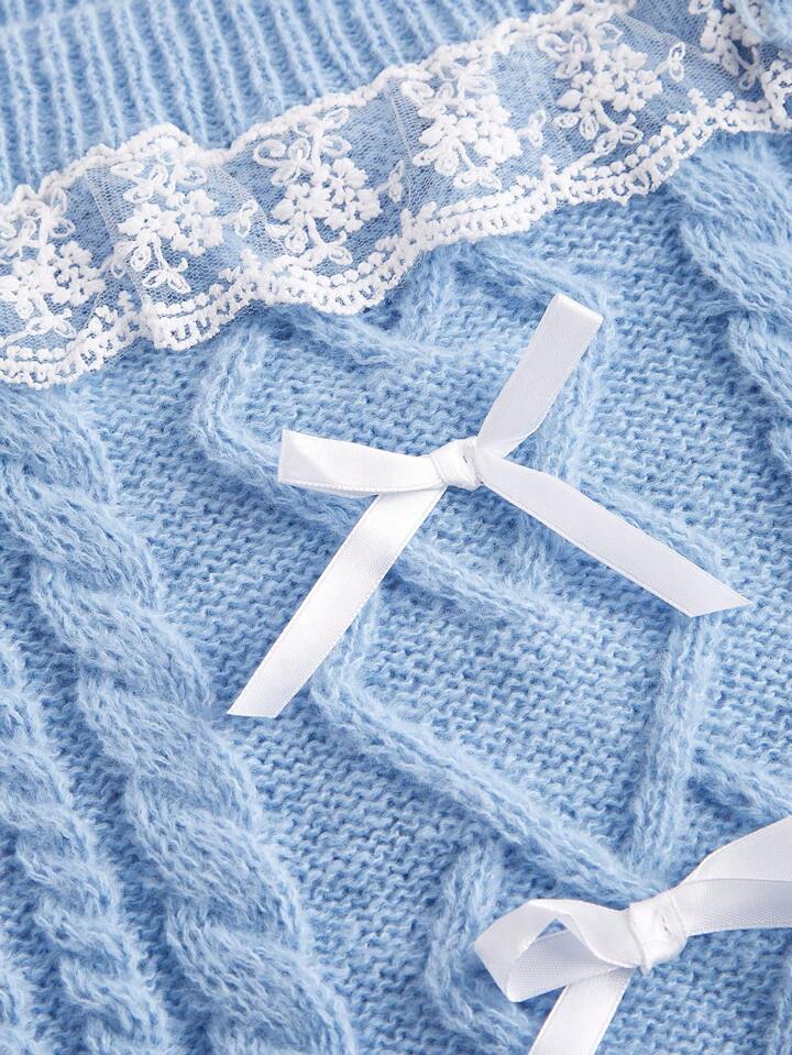 Kawaii Women's Off-Shoulder Sweater With Bow Decoration
