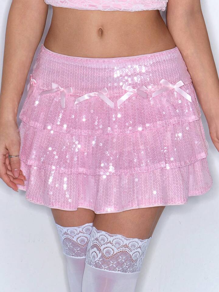 Kawaii Women's Party/Graduation Season Cute Layered Cake Style Sequin Ruffle Hem Mini Skirt, For Carnival