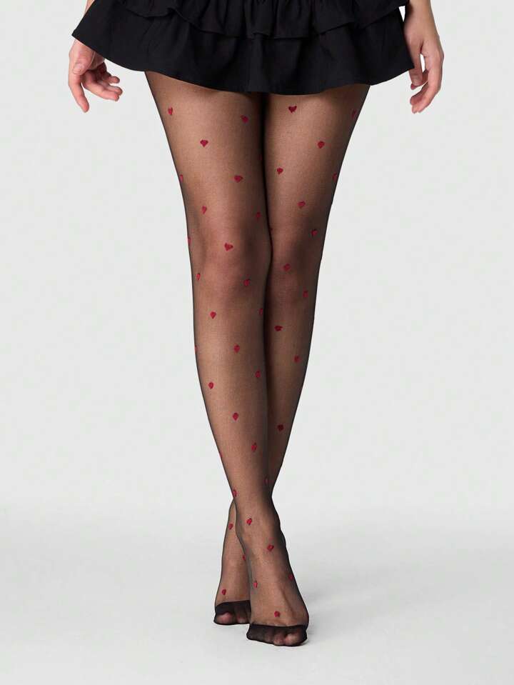 Kawaii Women's Sexy Heart Pattern Tights/Pantyhose/Leggings/Jeggings, Red