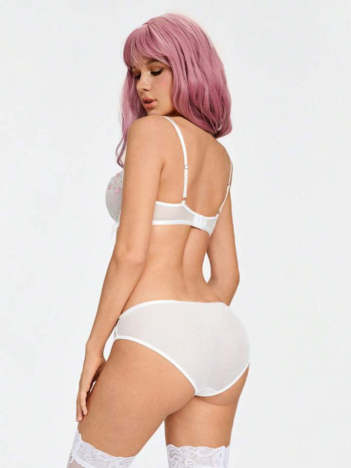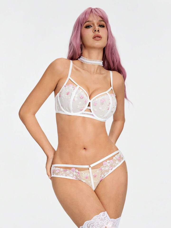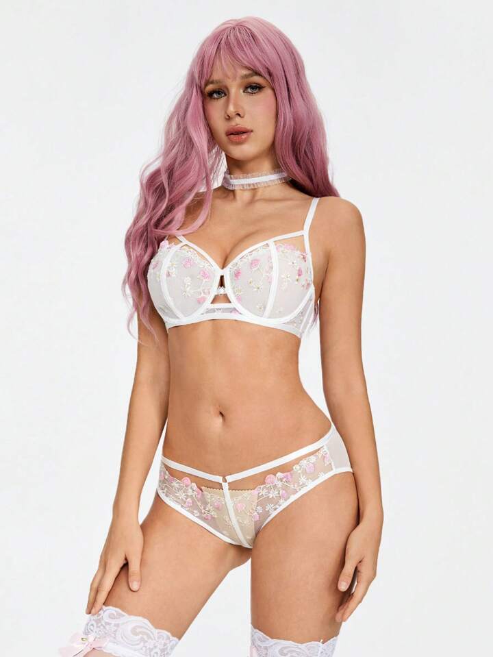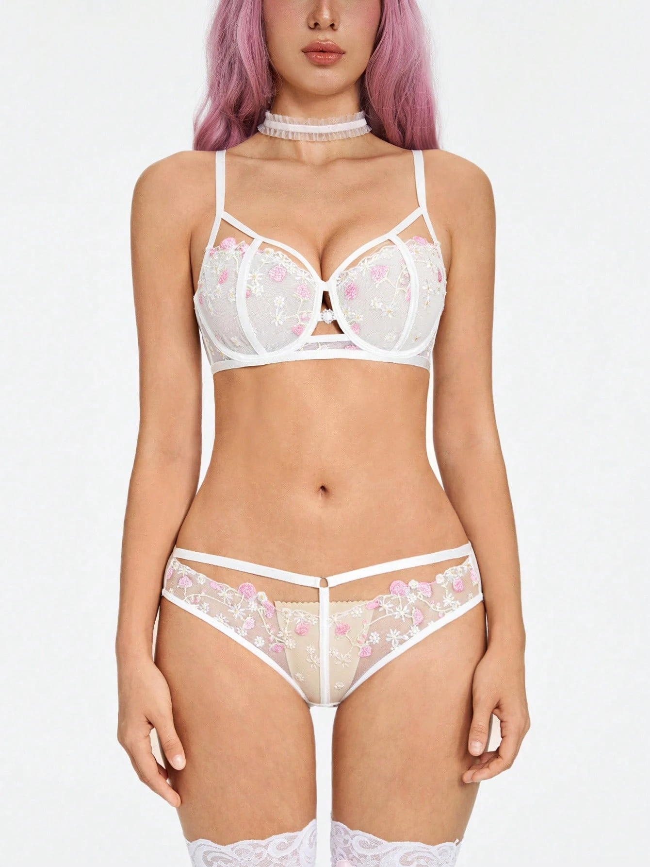 Kawaii Women's Sexy Lingerie Set With Underwire, Sweetheart, Strawberry & Floral Embroidery