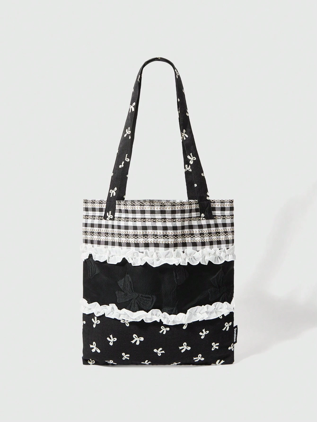 Kawaii Women's Solid Color Patchwork Minimalist Shoulder Bag, Daily Casual Storage Bag