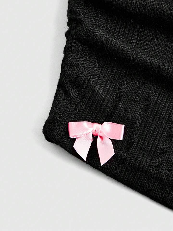 Kawaii Women's Strapless Top With Cute Bow Decoration, Metallic Cross & Ruched Texture Fabric