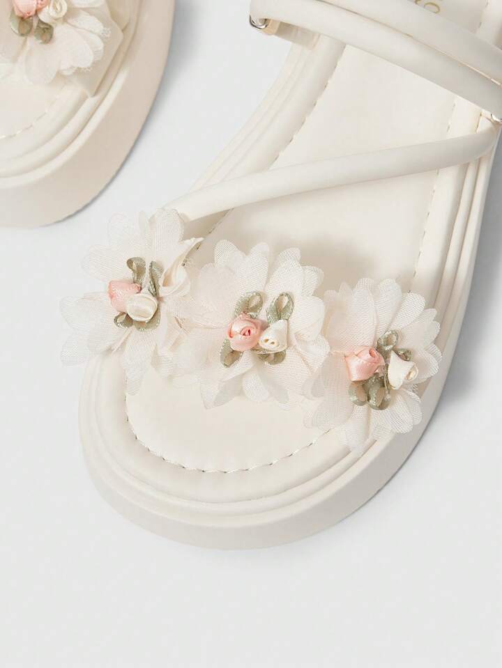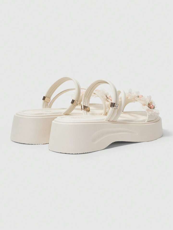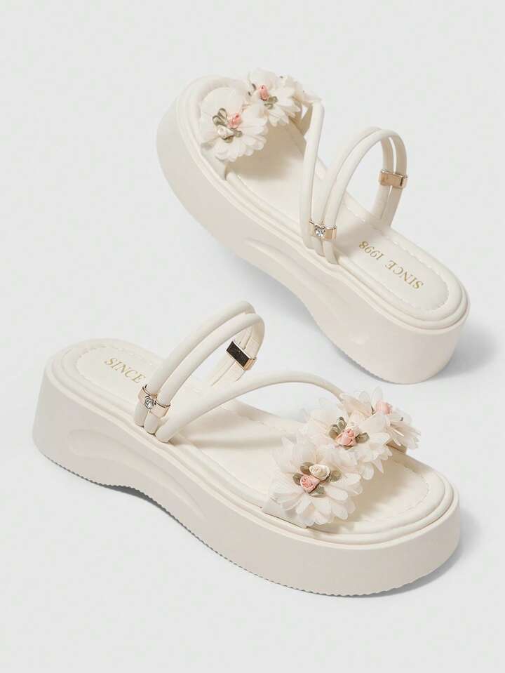 Kawaii Women's Summer Sweet Flower Patch Wedge Heel Sandals, Platform Slides, Beach Shoes