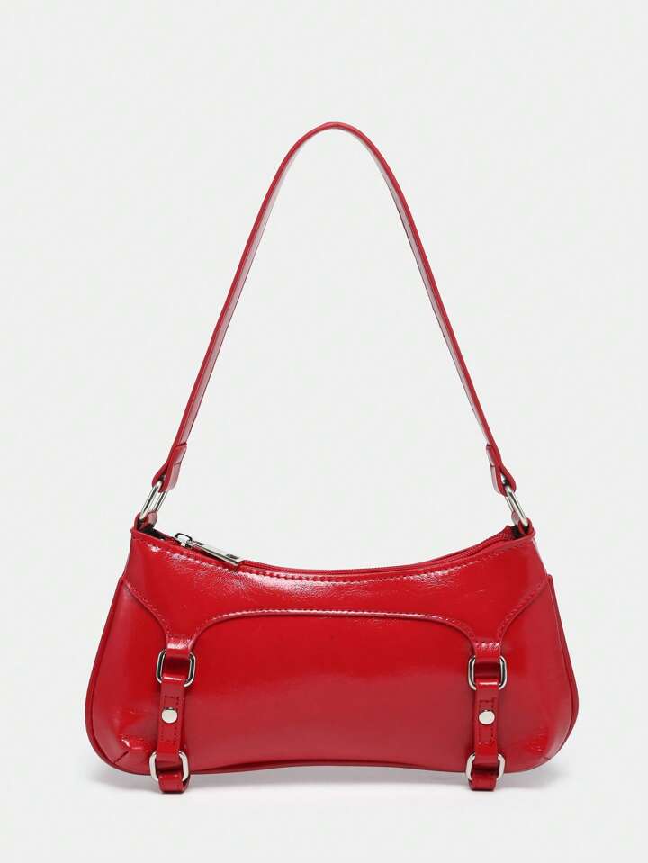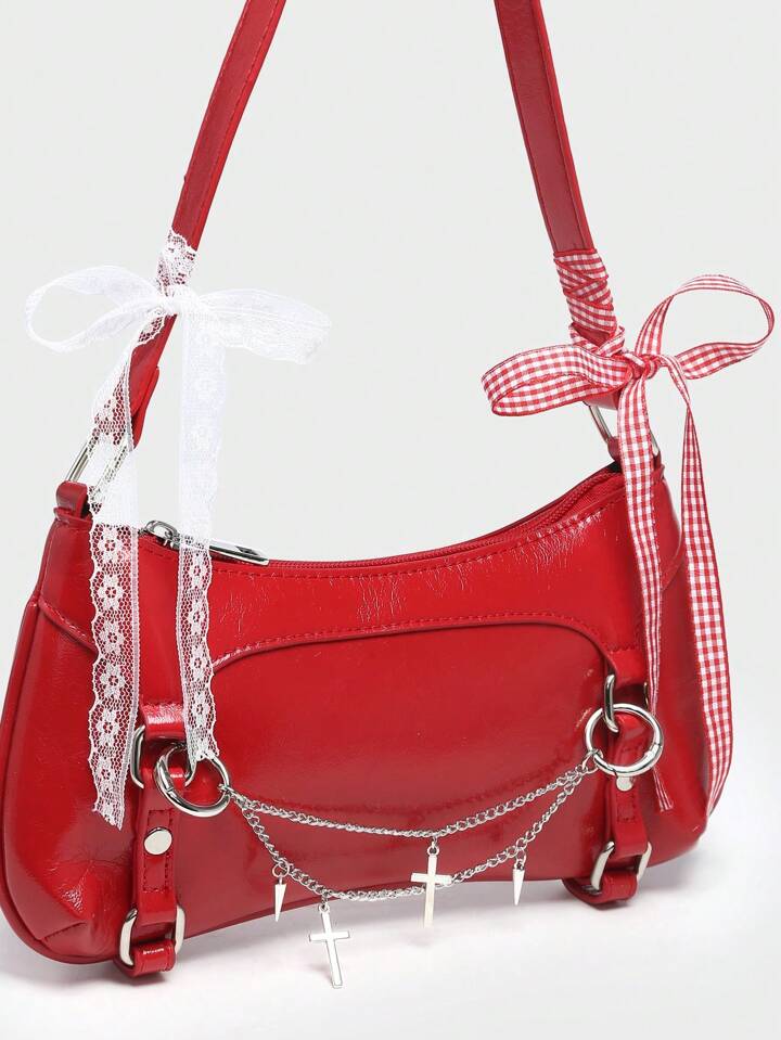 Kawaii Women's Vintage Ballet Bow Decor Chain & Pearl Lace Decorated Shoulder Armpit Handbag, Baguette Tote