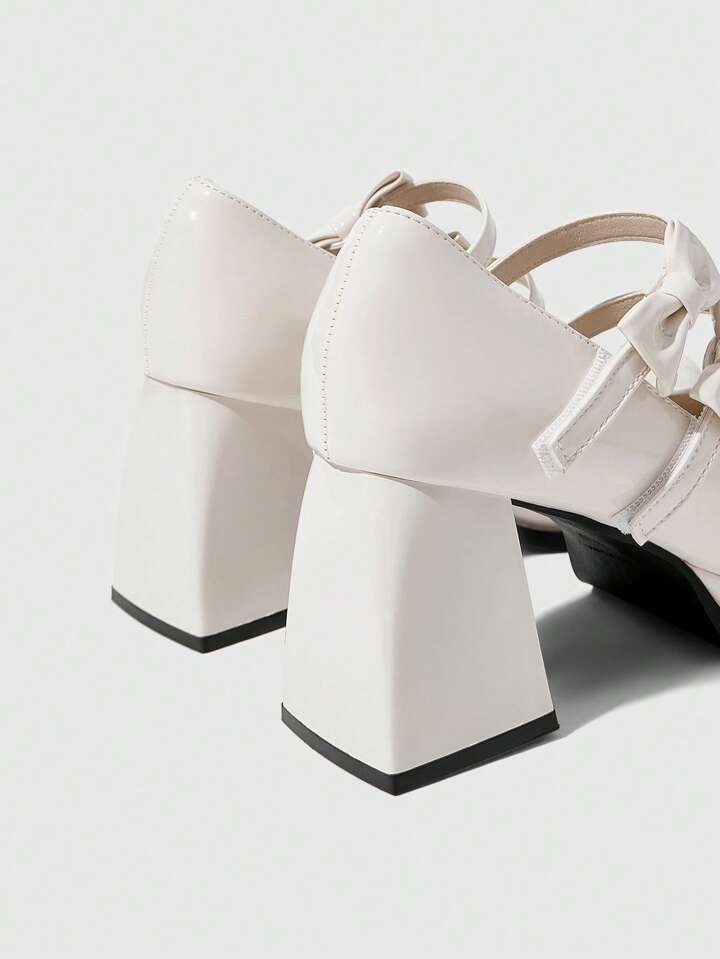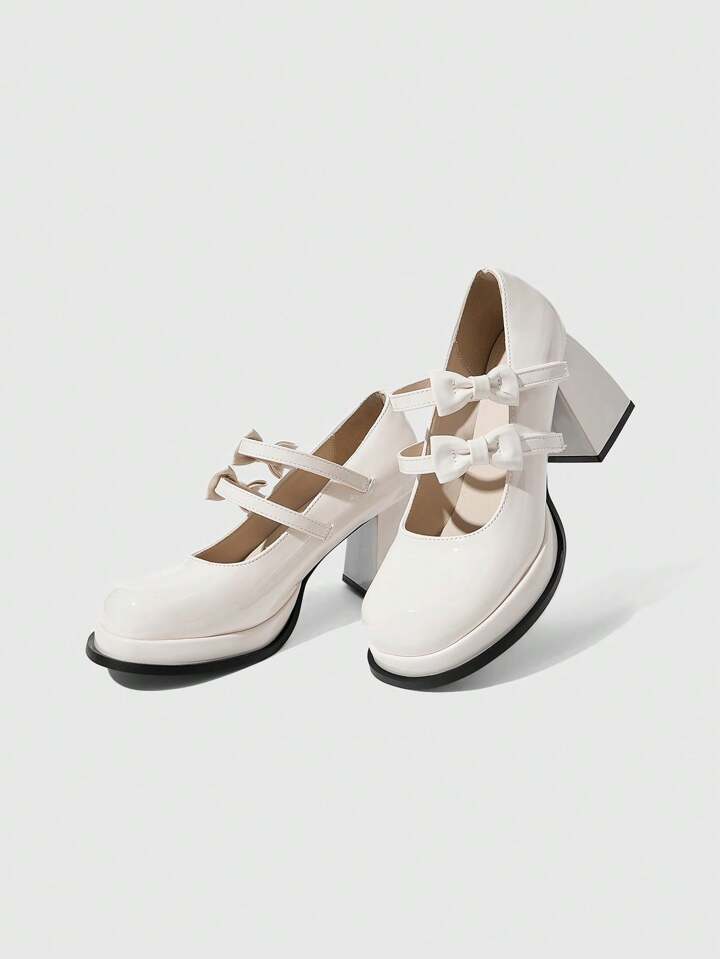 Kawaii Women's White Closed Toe Chunky Heel Platform Bow Dress Shoes, Sexy Loafers Mary Jane Flats For Formal Work Office Wear