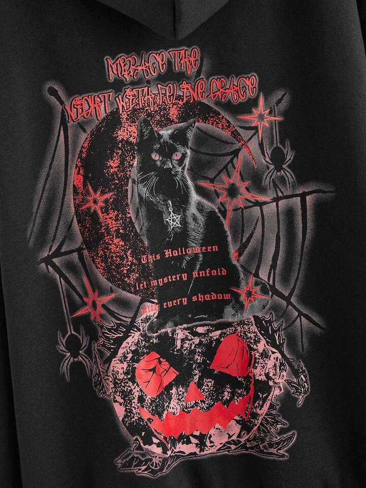 Kawaii Women's Y2K Black Cat, Pumpkin, Spider Print Sweatshirt