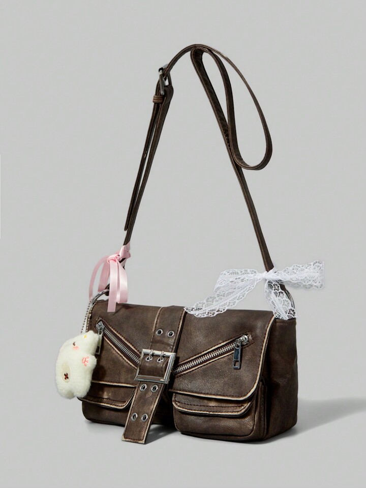 Kawaii Women's Zipper Design Grommet Decorative Casual Crossbody Shoulder Bag