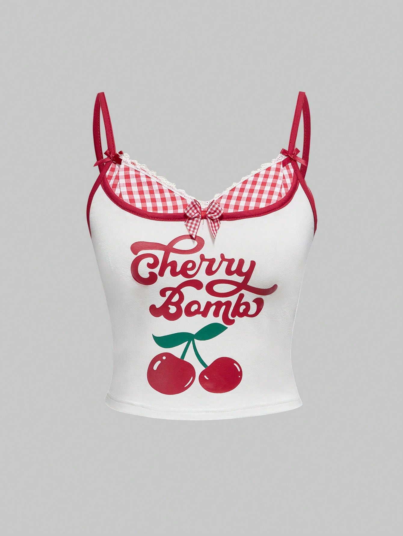 Kawaii Y2K Cute Cherry 2 In 1 Plaid Sexy Sweet Camisole
