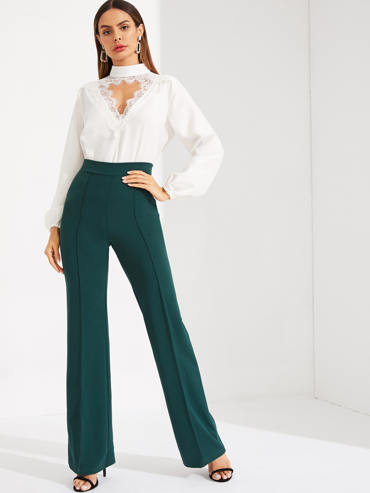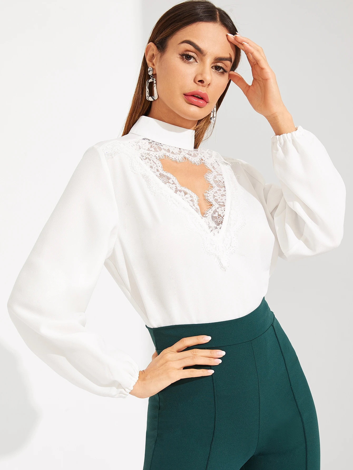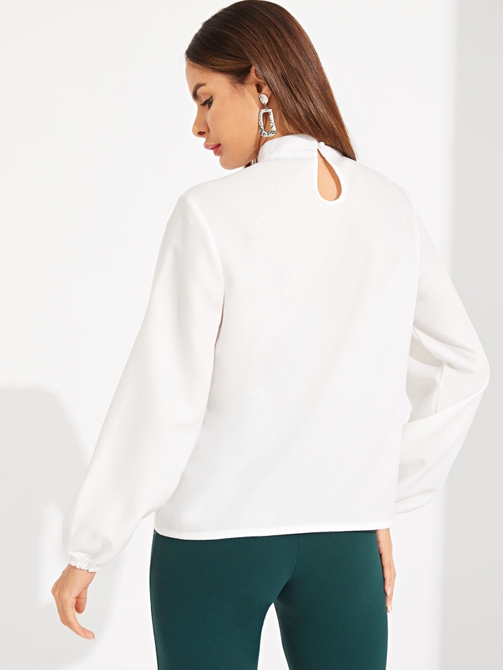 Lace Cutout Choker Neck Bishop Sleeve Top