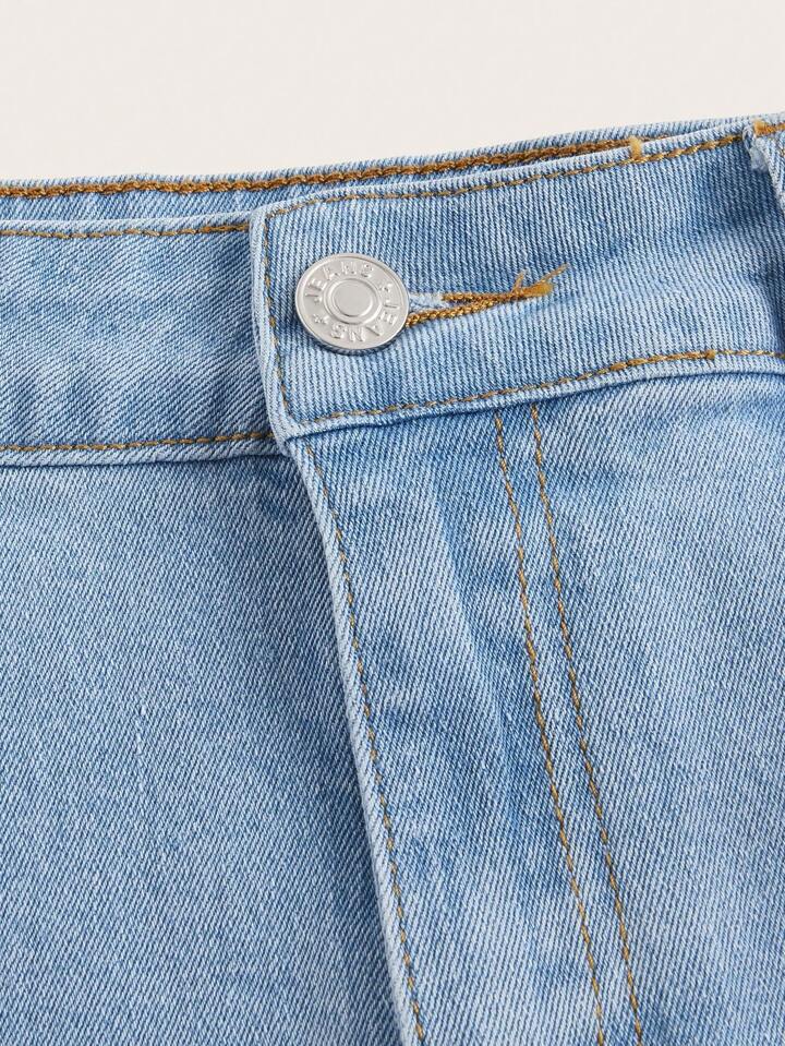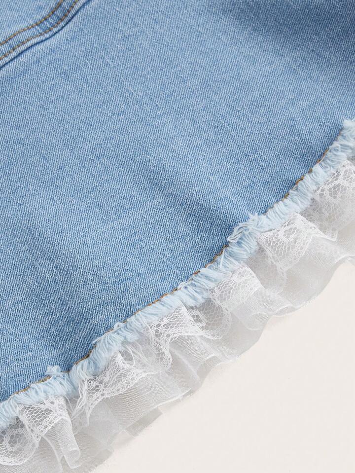 Lace Up Side Contrast Lace Ruffle Hem Denim Skirt
