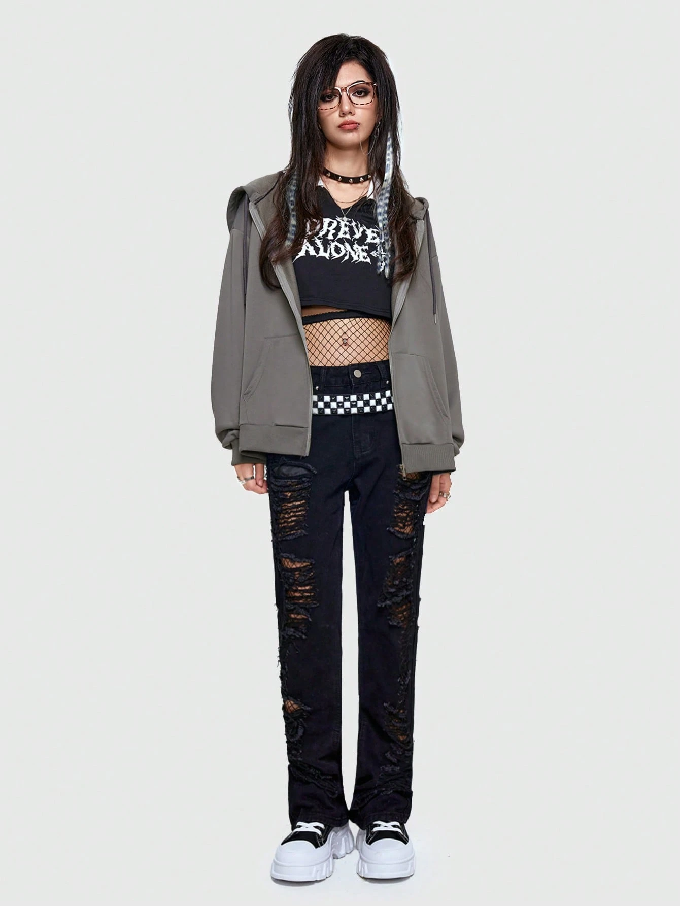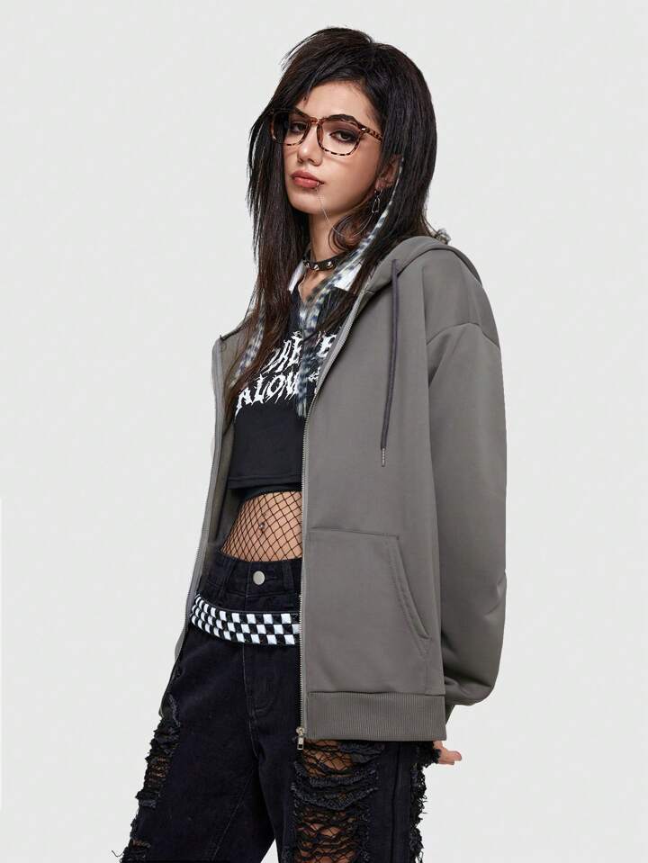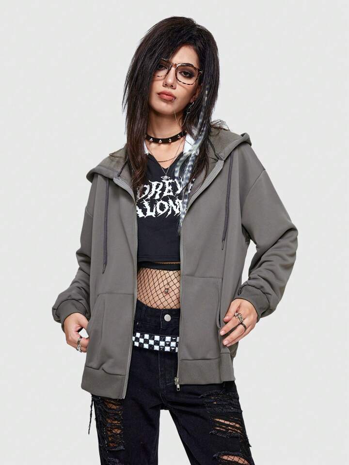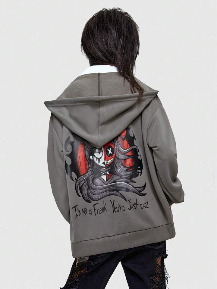 Leonardo De Dios Grunge Punk Figure Graphic Zip Up Drawstring Hoodie