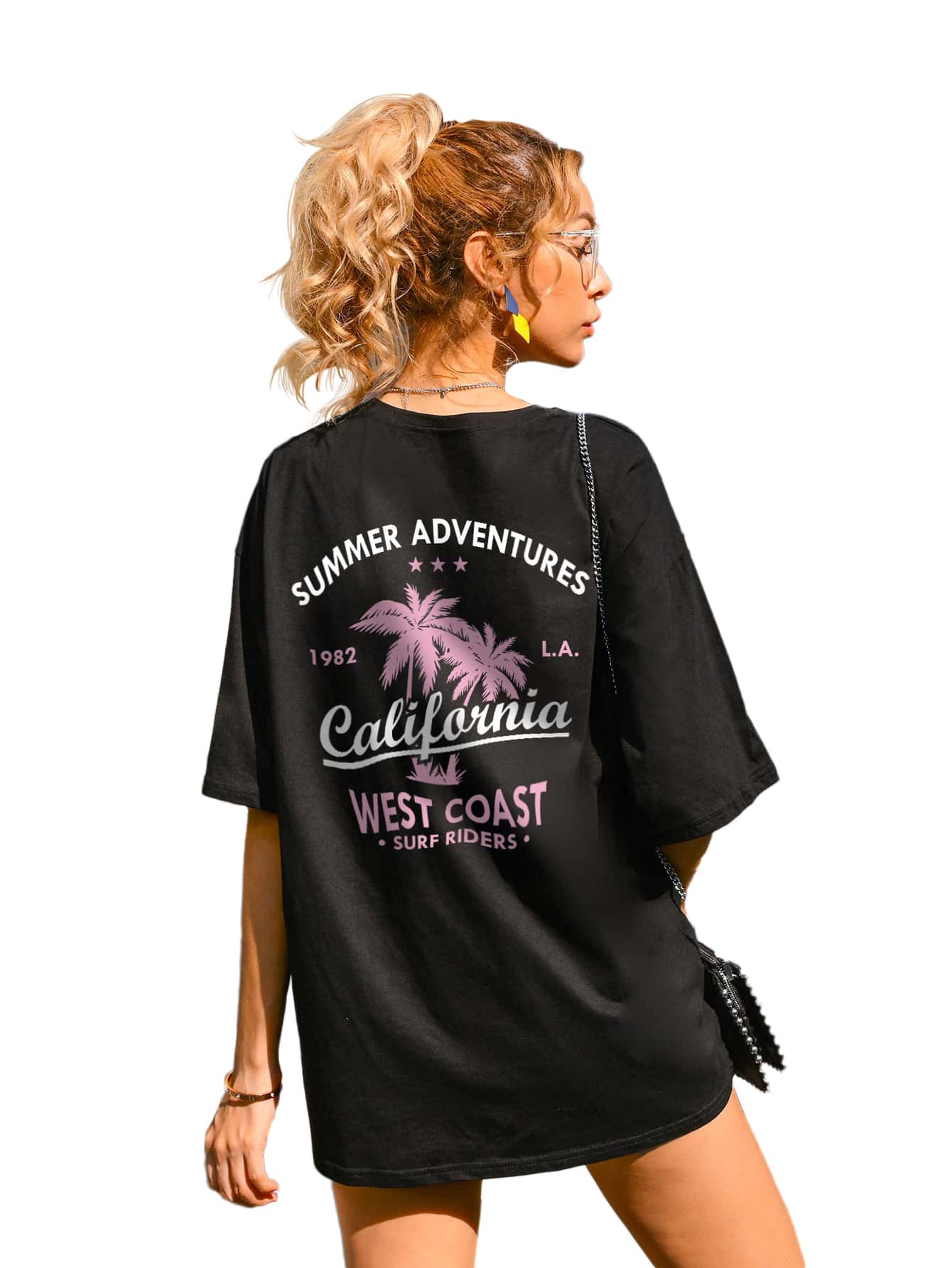 Letter And Tropical Print Oversized Tee Graphic Tees Women Tops, Unisex