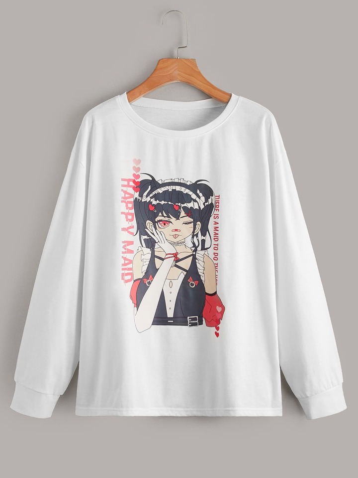 Letter Figure Graphic Drop Shoulder Sweatshirt