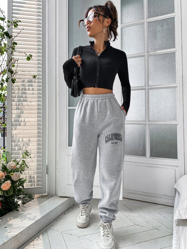 Letter Graphic Elastic Waist Sweatpants