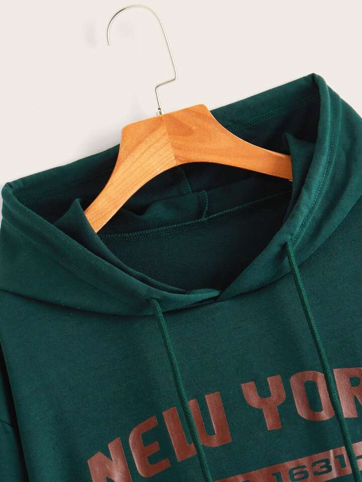 Letter Graphic Kangaroo Pocket Drop Shoulder Drawstring Hoodie