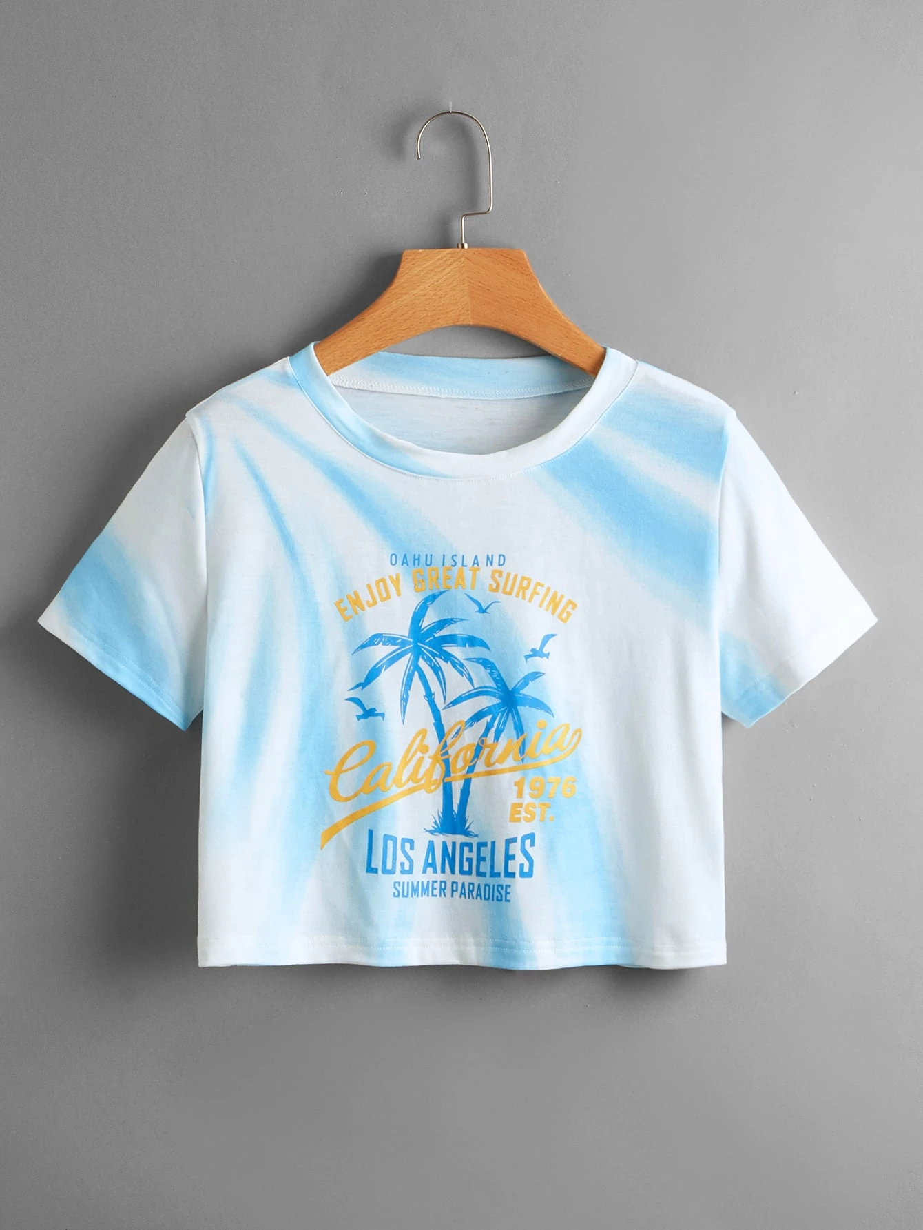 Letter Tropical Graphic Tie Dye Crop Tee