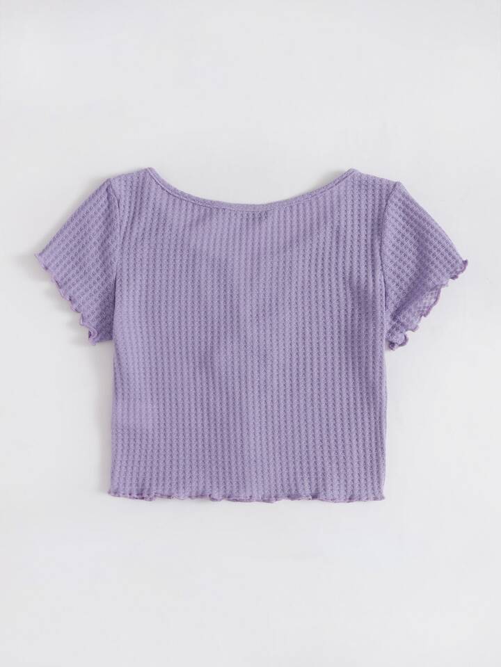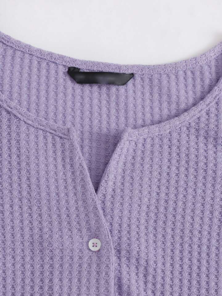 Lettuce Edge Button Front Waffle Knit Tee