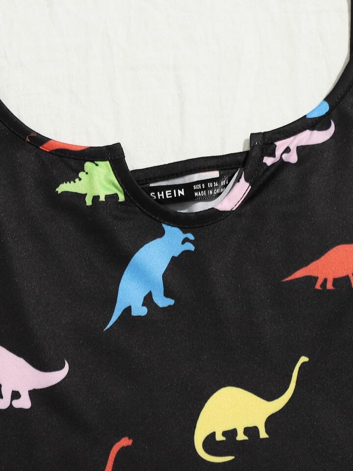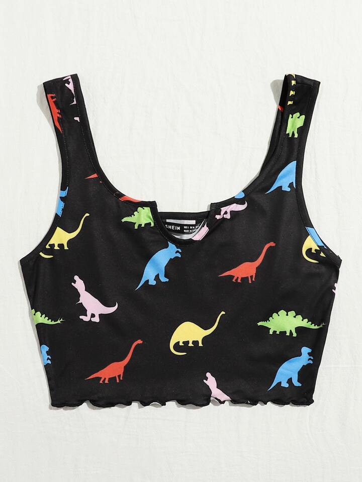 Little Dinosaur Print Lettuce Trim Crop Tank Top