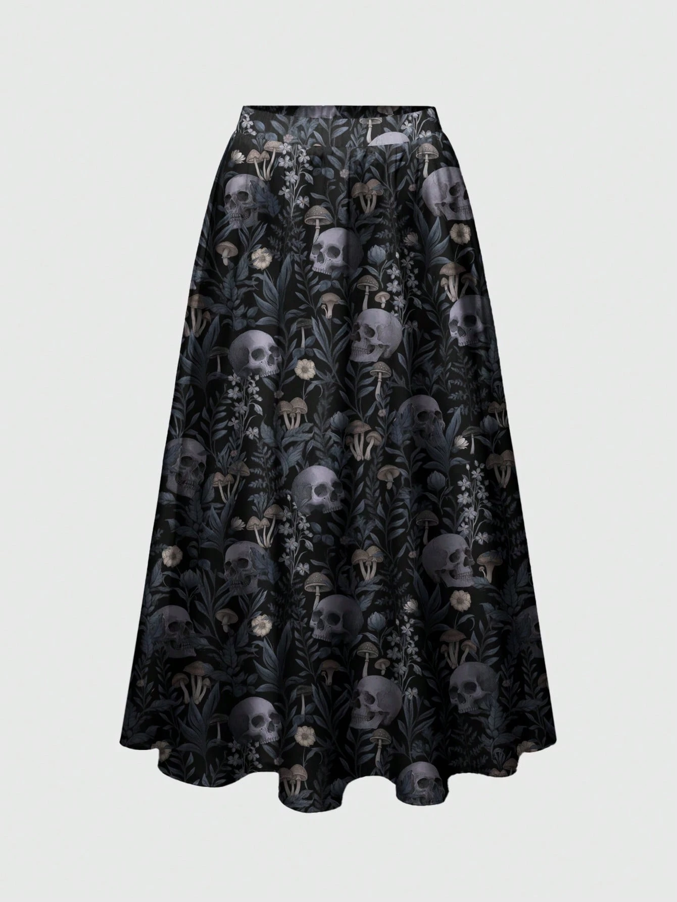 Loose Fit Plus Size Romantic Forest Skeleton & Leaf Print Skirt, Gothic Dark Mysterious Style
