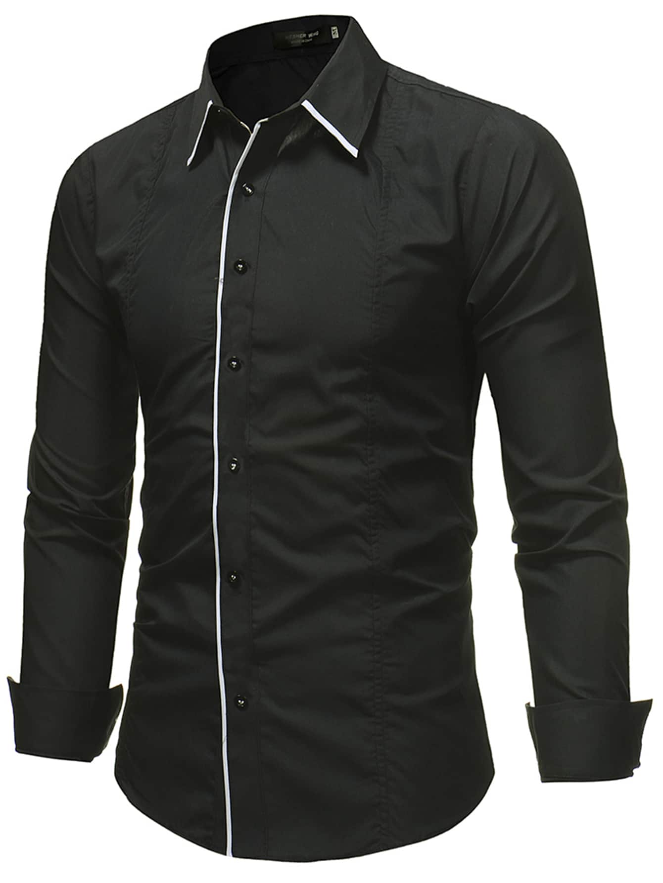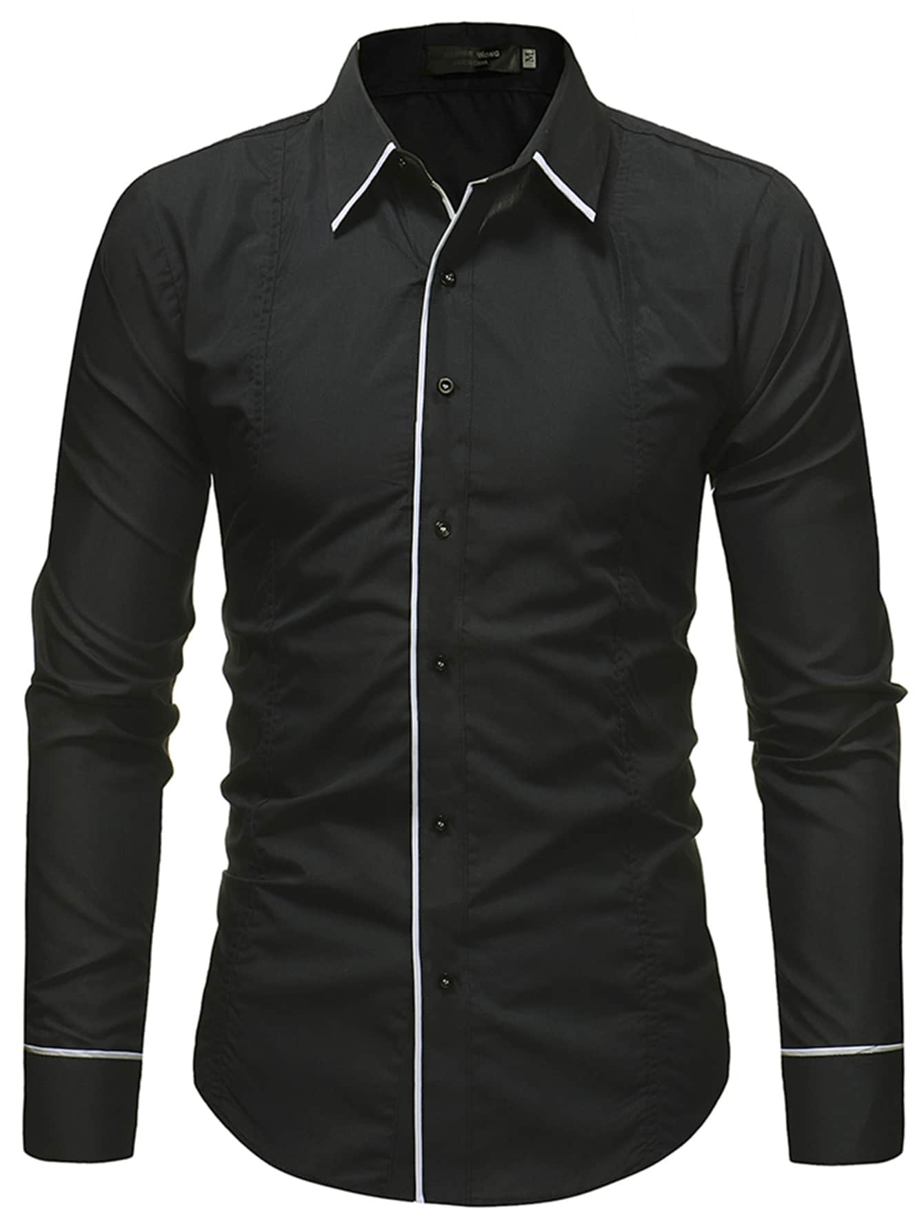 Men Contrast Piping Button Up Shirt