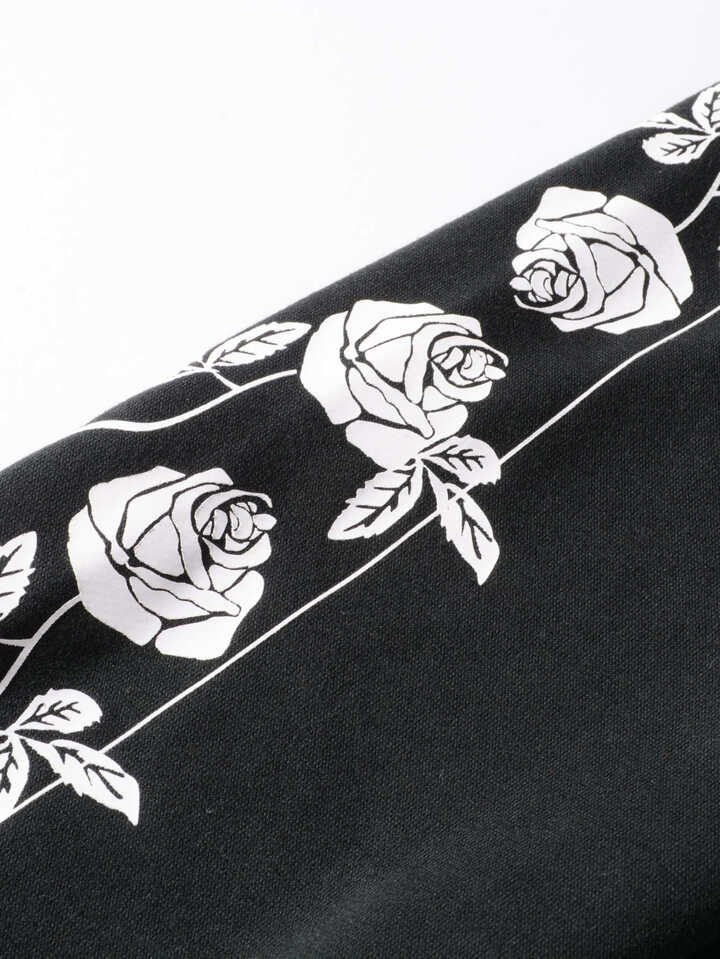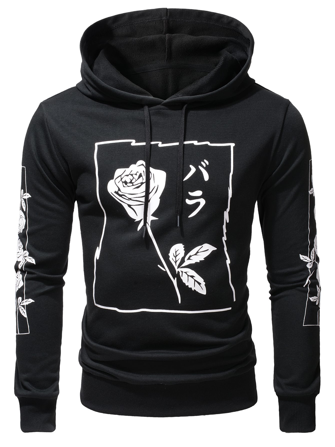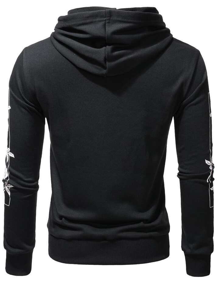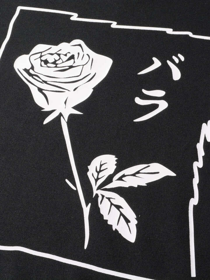 Men Japanese Letter And Floral Print Hoodie