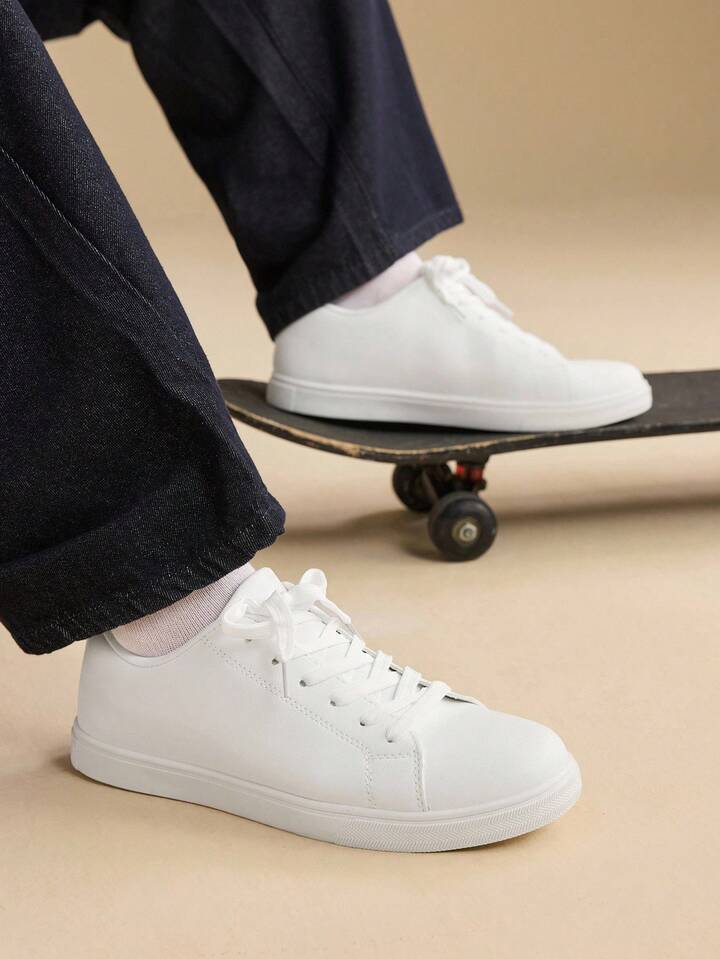 Men Minimalist Lace-Up Front Skate Shoes, Sporty Outdoor Sneakers Men Business Shoes Valentines