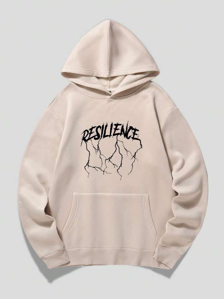 Men Slogan & Figure Graphic Kangaroo Pocket Thermal Hoodie