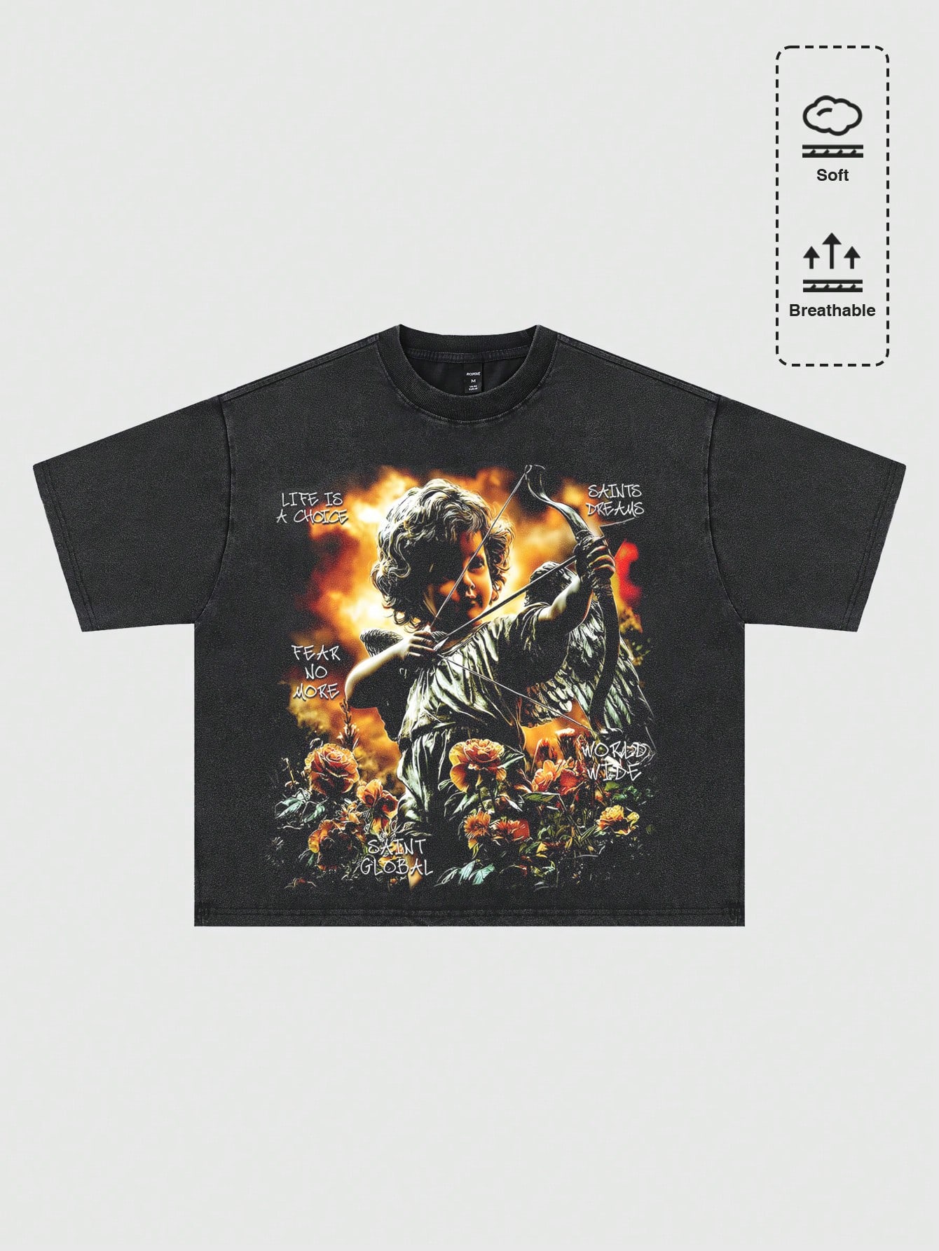Men's Angel Rose Street Graphic Round Neck Black Short Sleeve T-Shirt