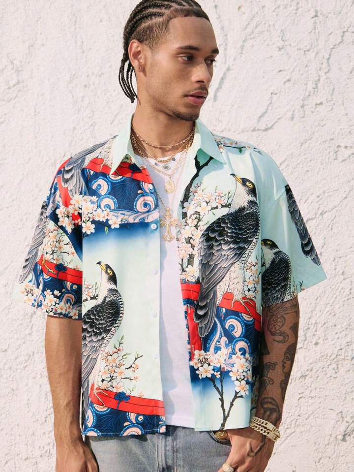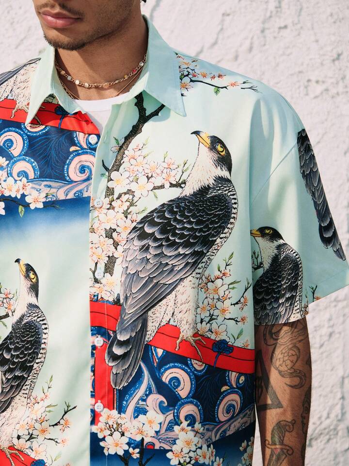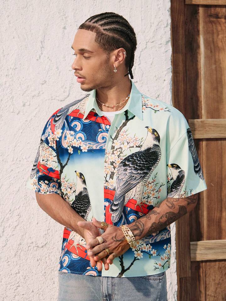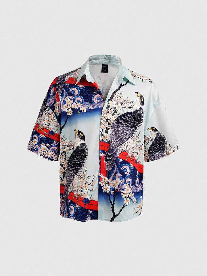 Men's Anime Boxy Fit Short Sleeve Casual Shirt