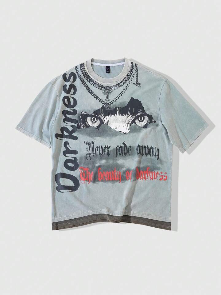 Men's Anime Character Crew Neck Short Sleeve Printed Casual Top, Everyday Wear