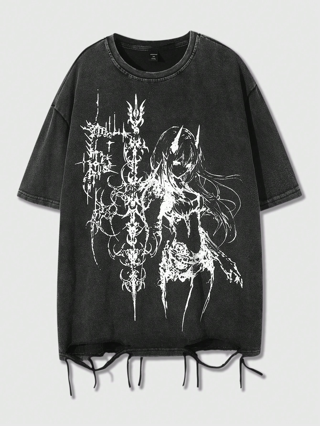 Men's Anime Print Distressed Ripped T-Shirt