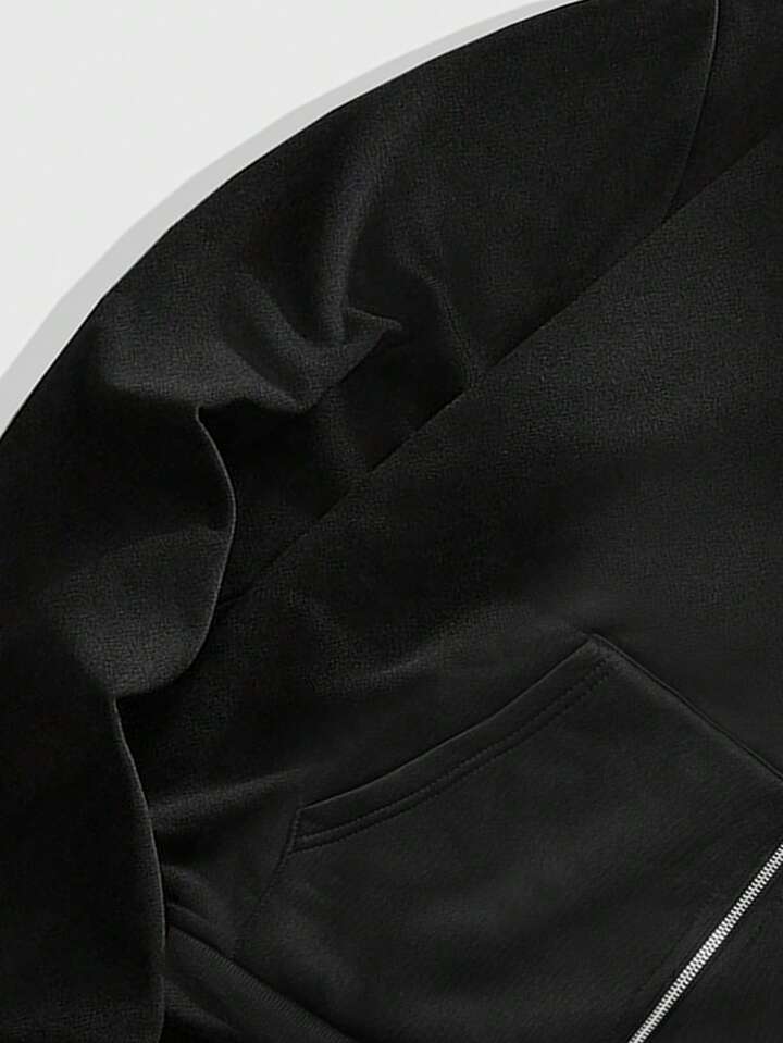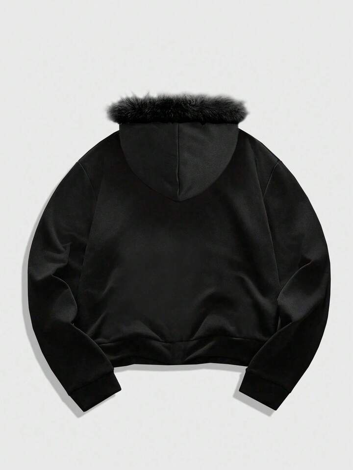 Men's Autumn/Winter Embroidered Zip-Up Hooded Sweatshirt With Fur Collar
