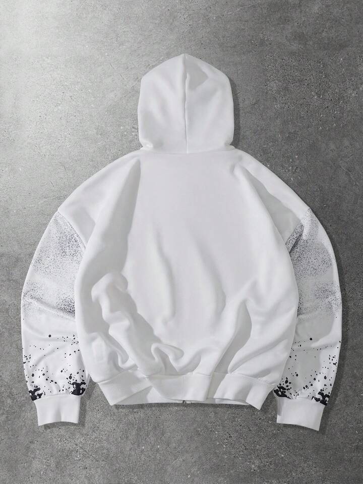 Men's Blurred Portrait Print Zip-Up Hoodie, Retro Street Style