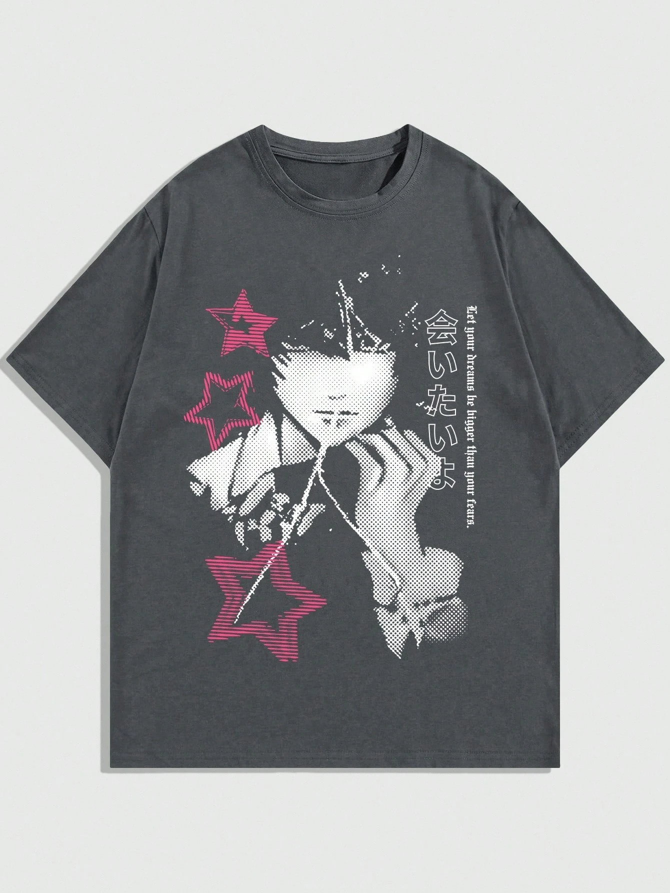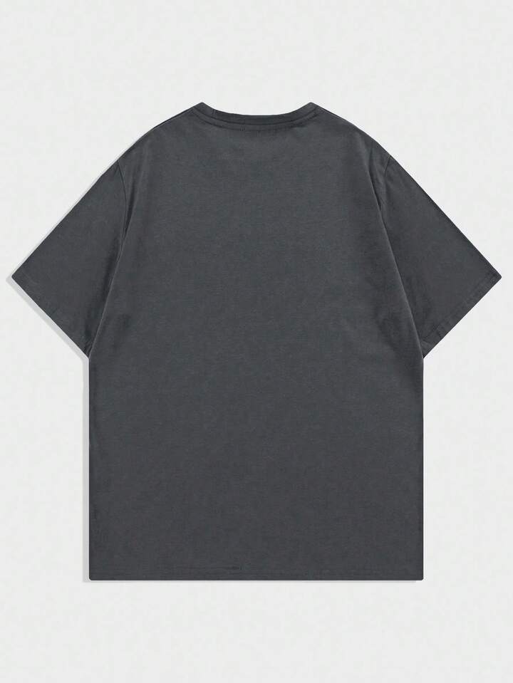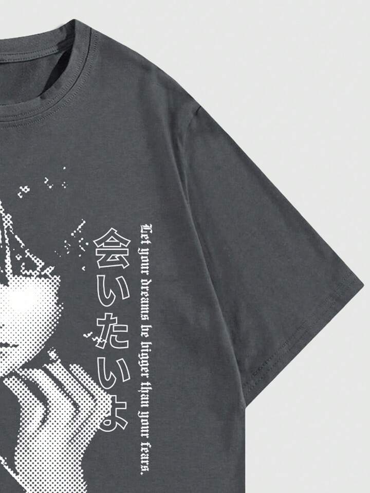 Men's Cartoon Anime Character & Slogan Print Round Neck Short Sleeve Casual T-Shirt