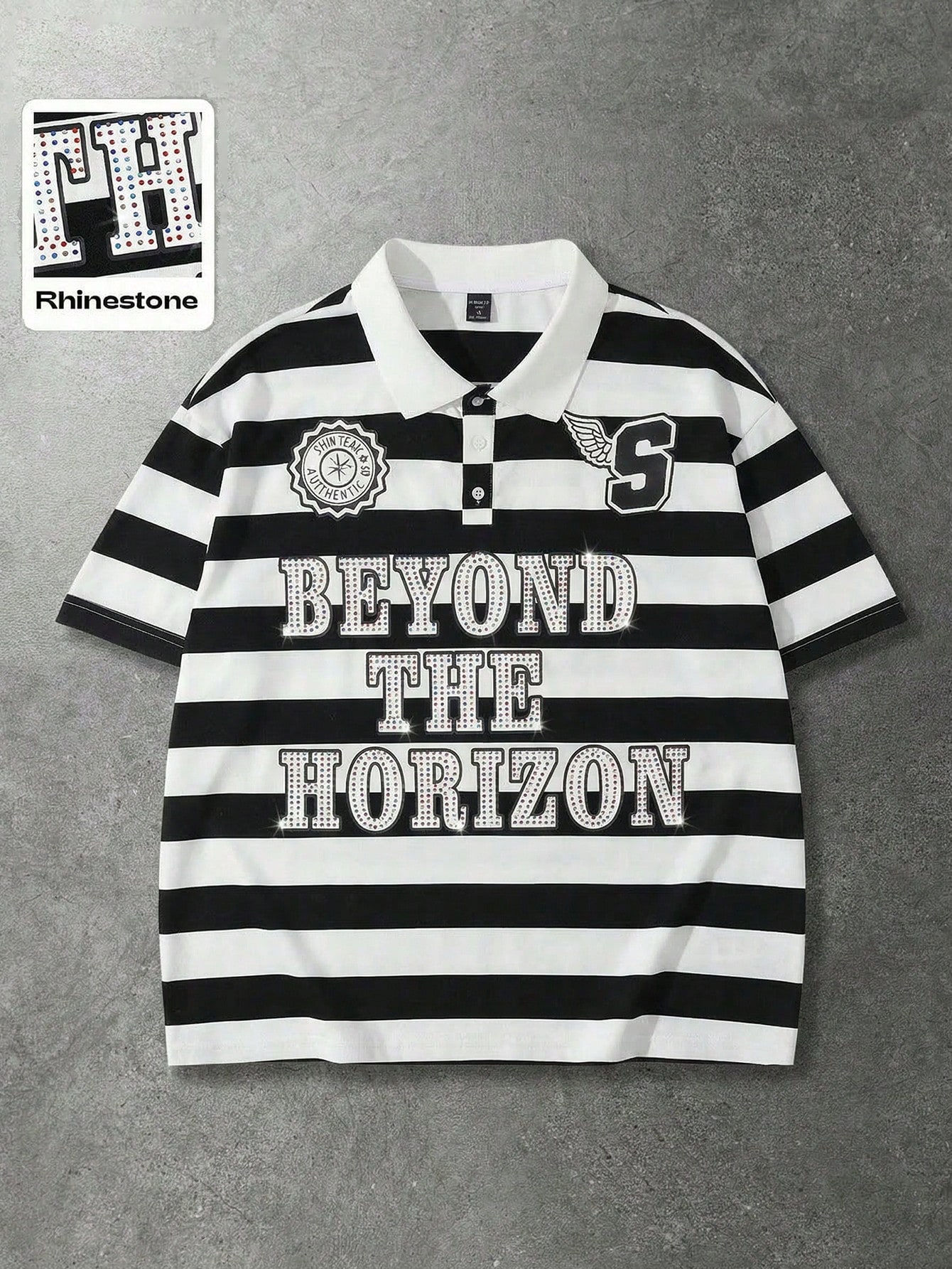 Men's Casual Fashion Street Sparkling Diamond Crafted Striped Polo Shirt, Summer