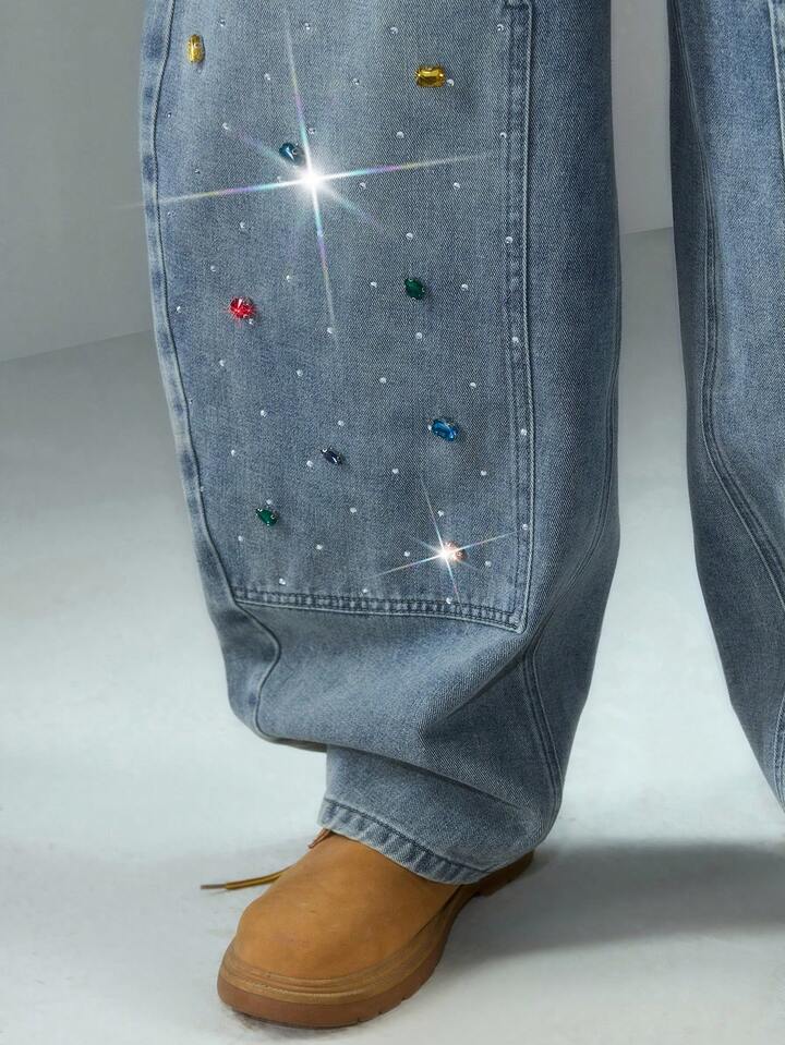 Men's Colorful Rhinestone Embellished Unique Curved Leg Pants
