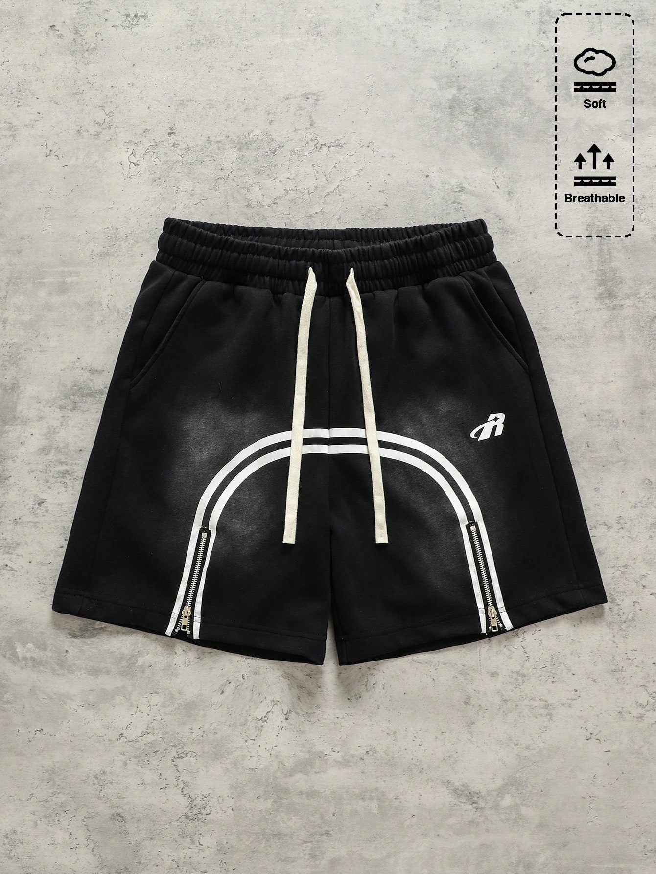 Men's Contrast Stripe Print Drawstring Waist Street Shorts