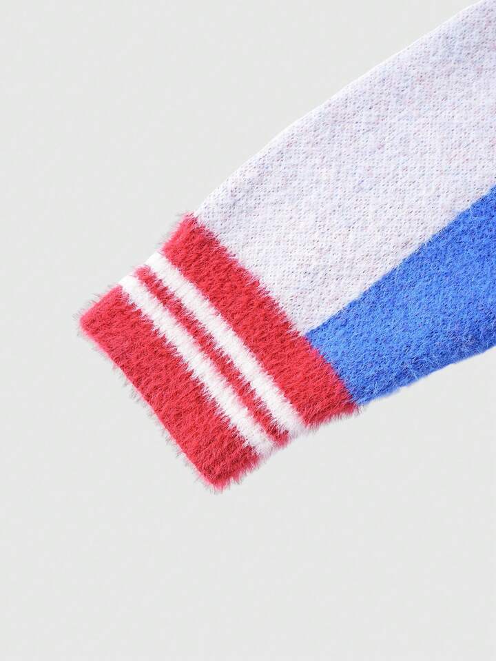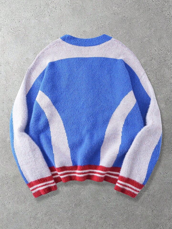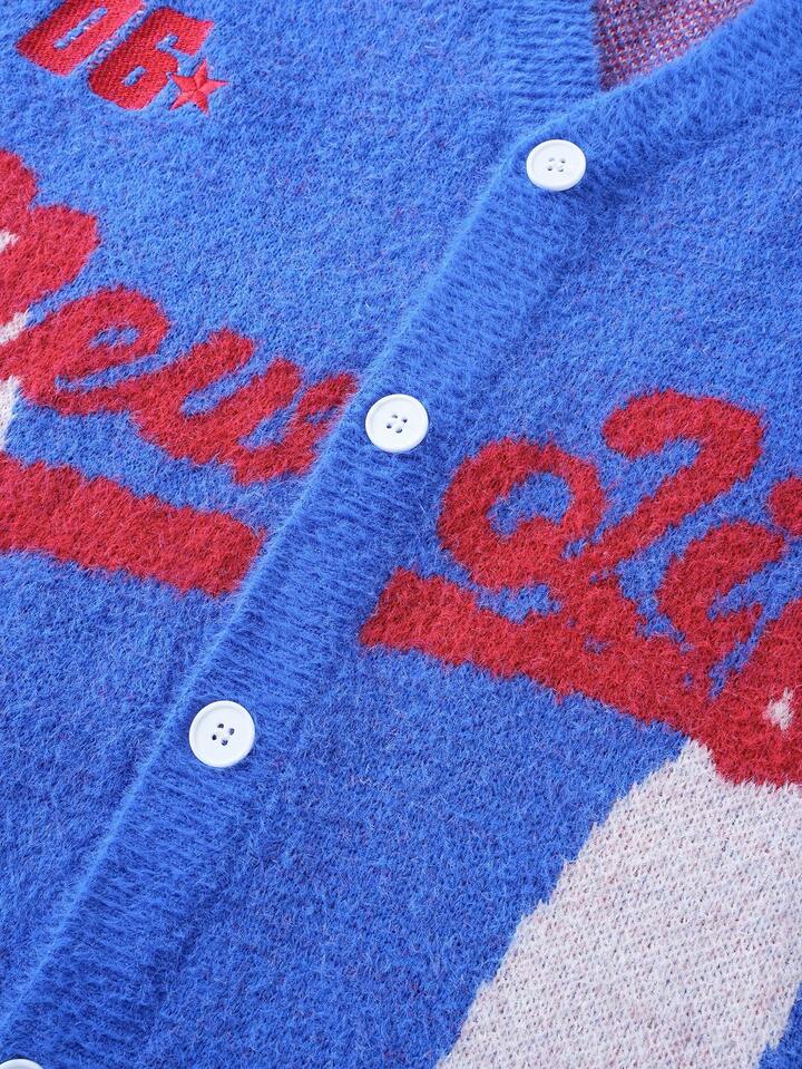 Men's Embroidered Letter Jacquard Long Sleeve Single-Breasted Knit Cardigan