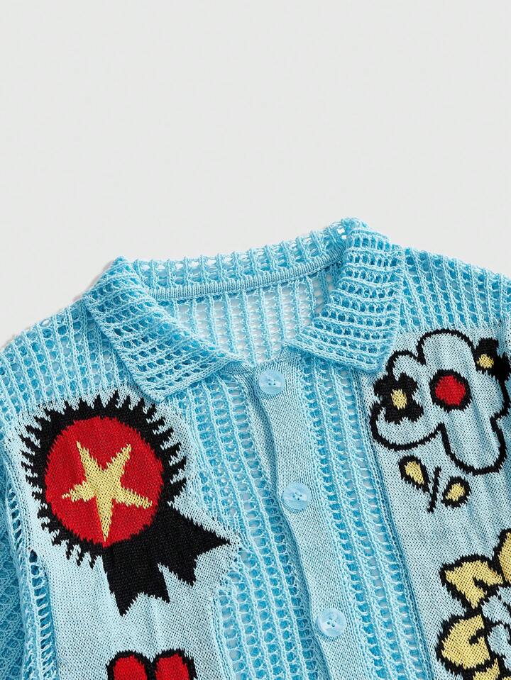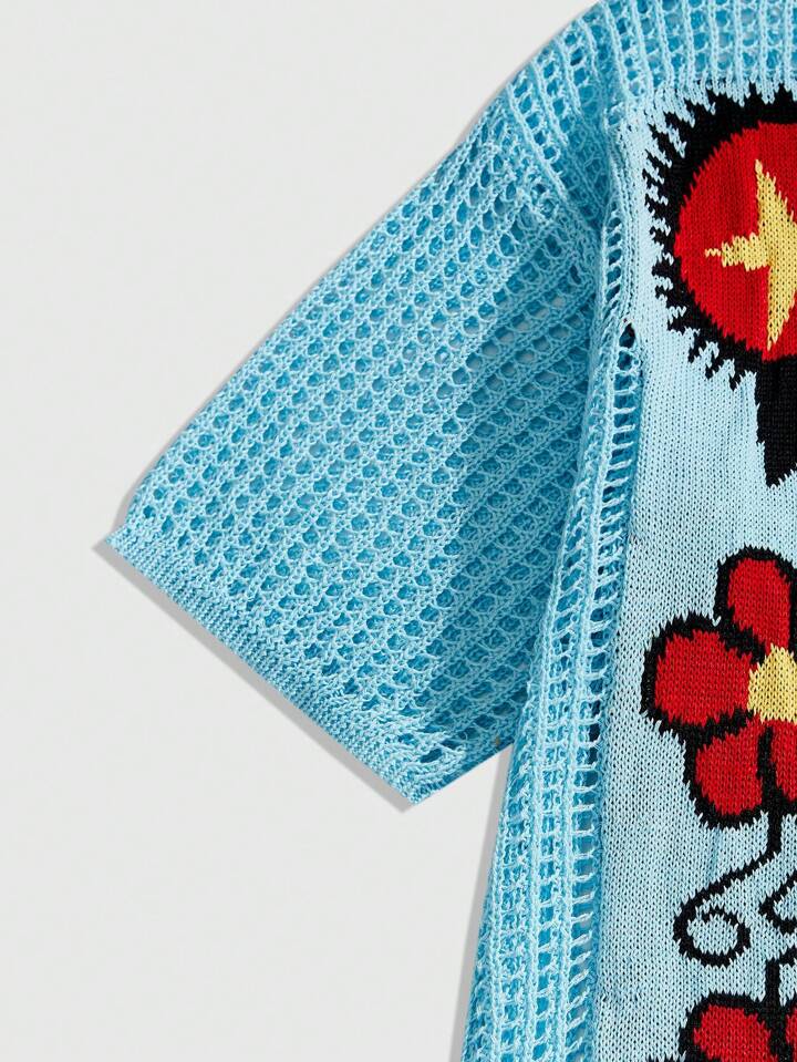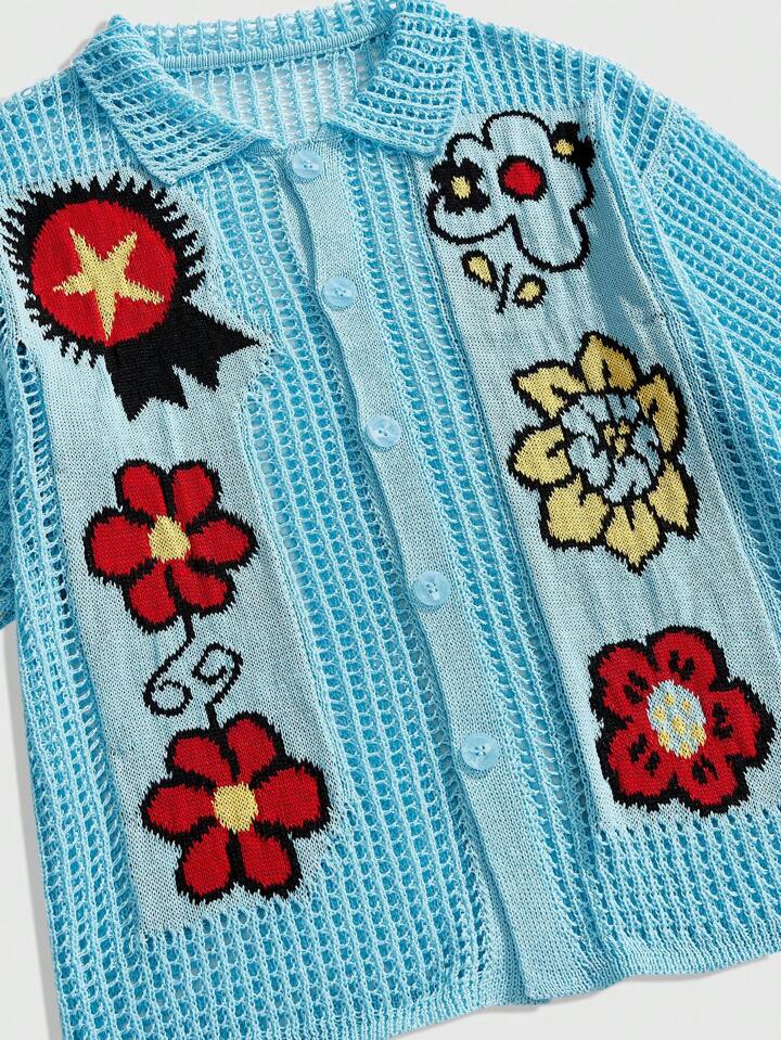 Men's Floral Casual Knit Short Sleeve Top, Spring/Summer Vacation