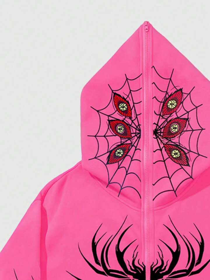 Men's Front Zip Spider Print Simple Hooded Casual Sweatshirt, Halloween