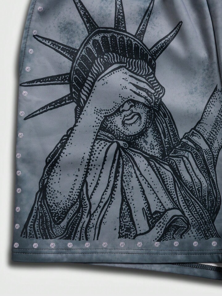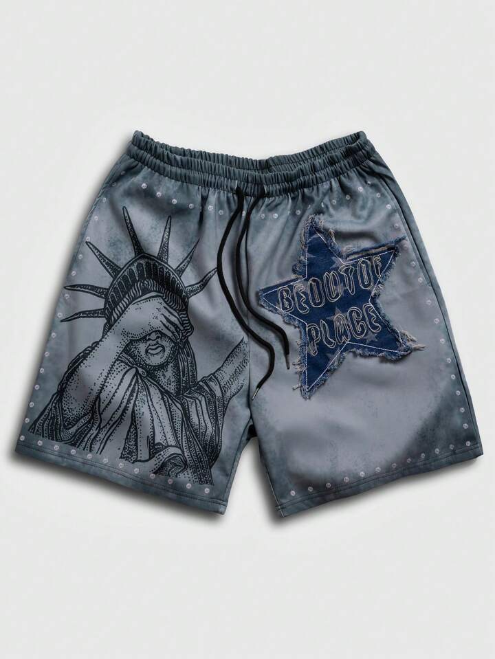 Men's Goth Casual Street Sculpture & Letter Graphic Drawstring Waist Shorts, Summer, Halloween
