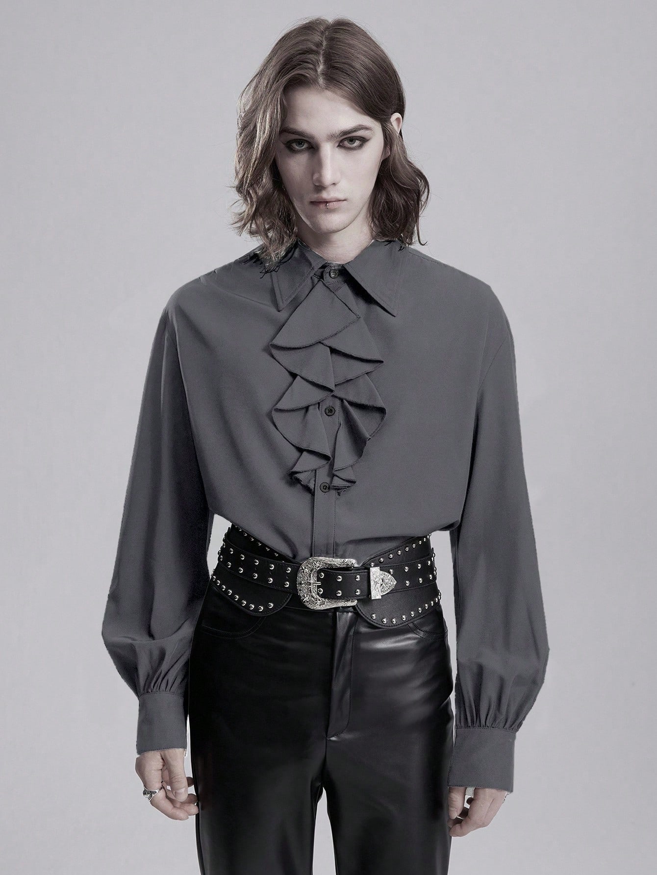 Men's Gothic Solid Color Ruffle Trim Long Sleeve Retro Shirt