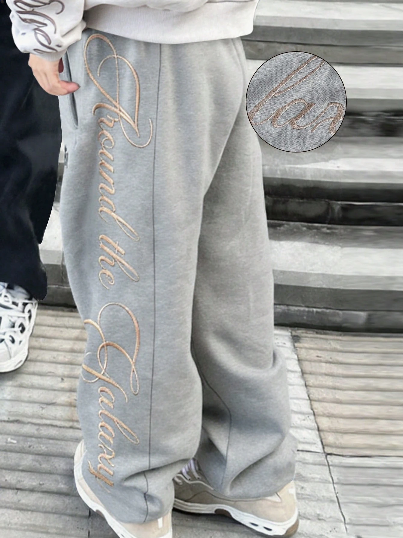 Men's Letter Embroidered Casual Versatile Slant Pocket Loose Sweatpants