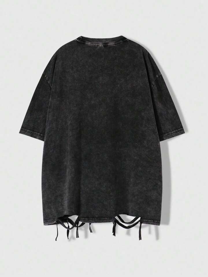 Men's Letter Embroidery Round Neck Summer Casual Short Sleeve T-Shirt With Distressed Details
