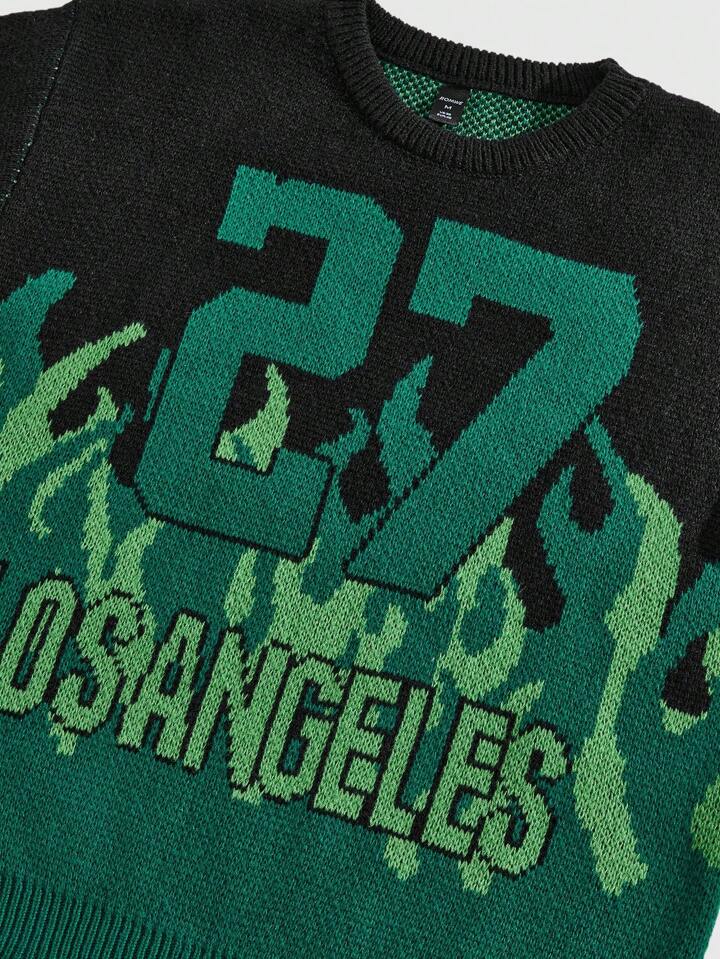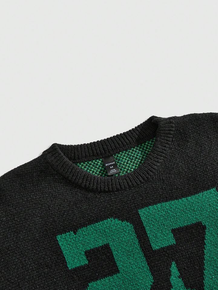 Men's Numeric Jacquard Crew Neck Long Sleeve Sweater, Casual Everyday Wear