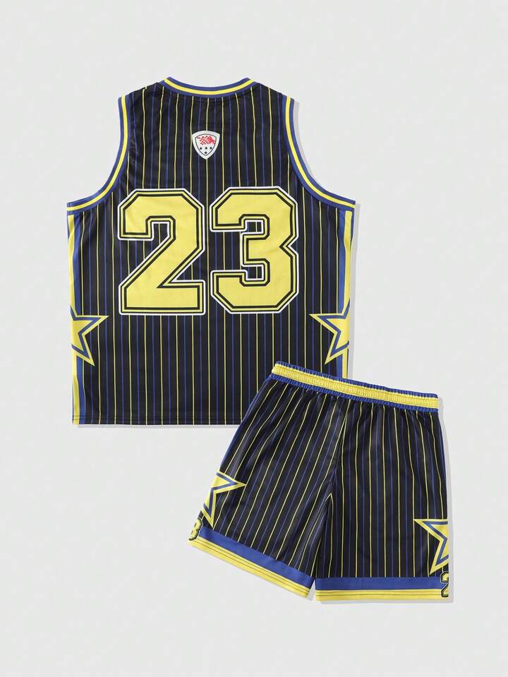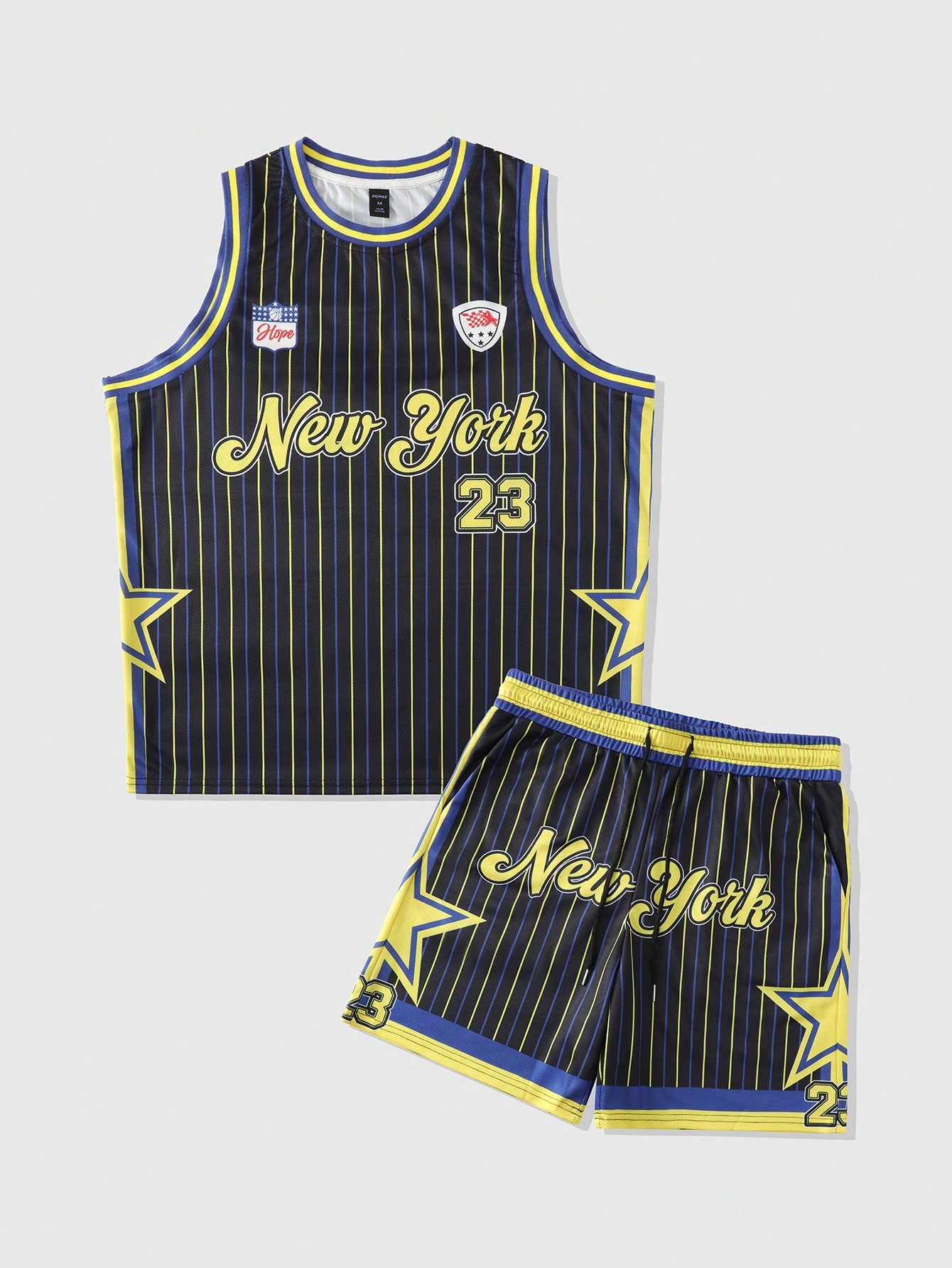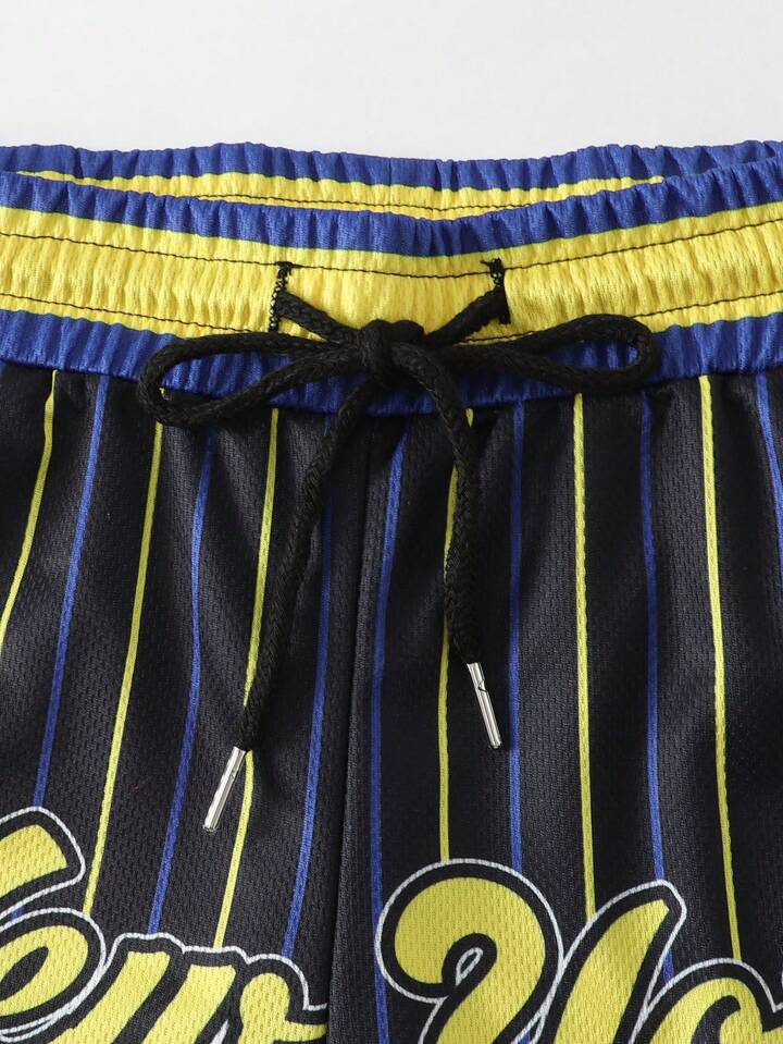 Men's Preppy Casual Striped Print Vest & Drawstring Shorts Set