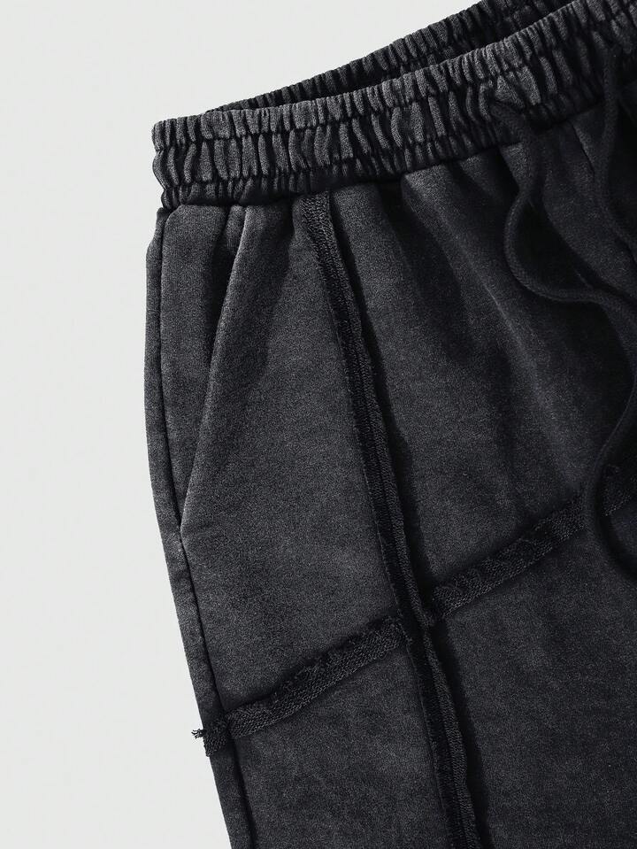Men's Preppy Number Front Tie Pocket Digital Print Casual Fleece Shorts