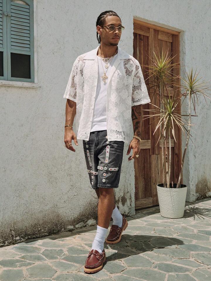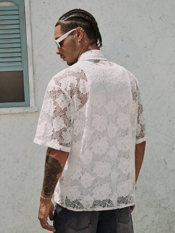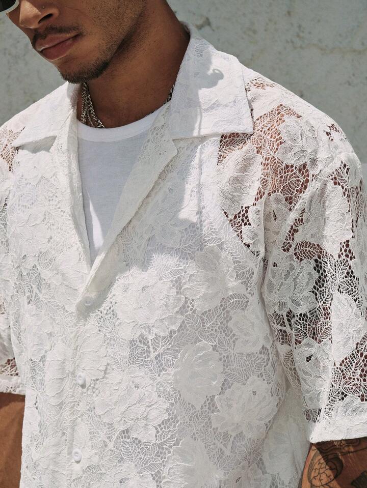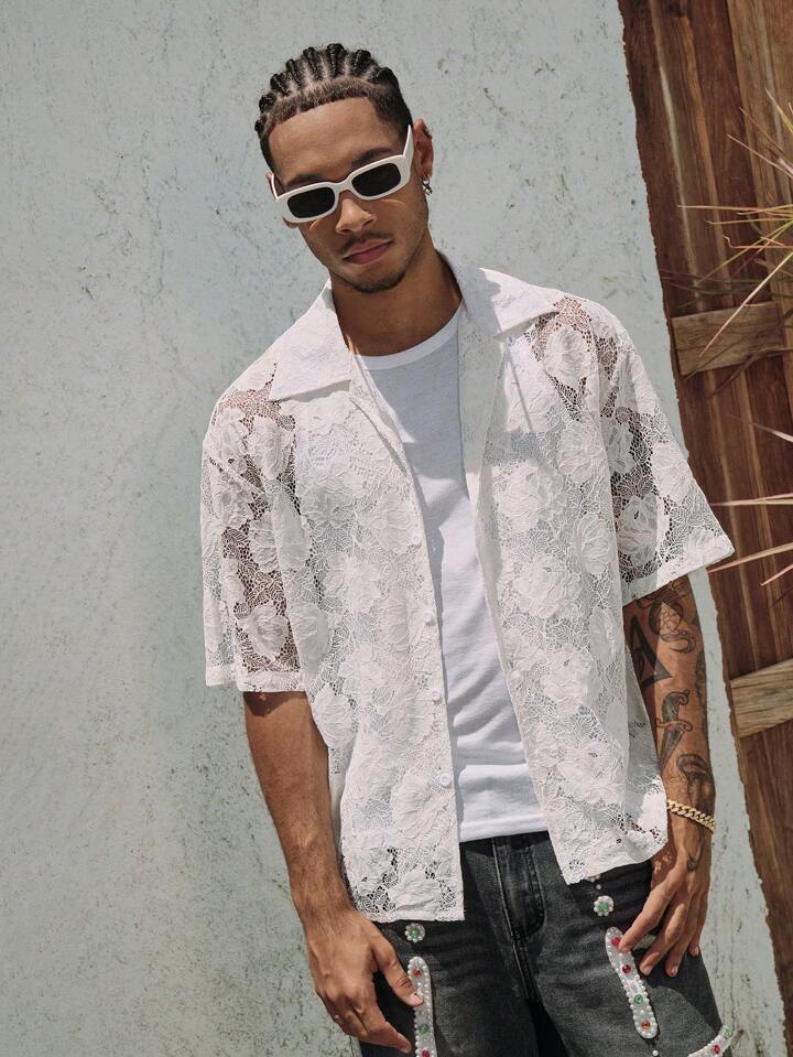Men's Resort Jacquard Shirt, Suitable For Casual Wear, Spring/Summer Vacation